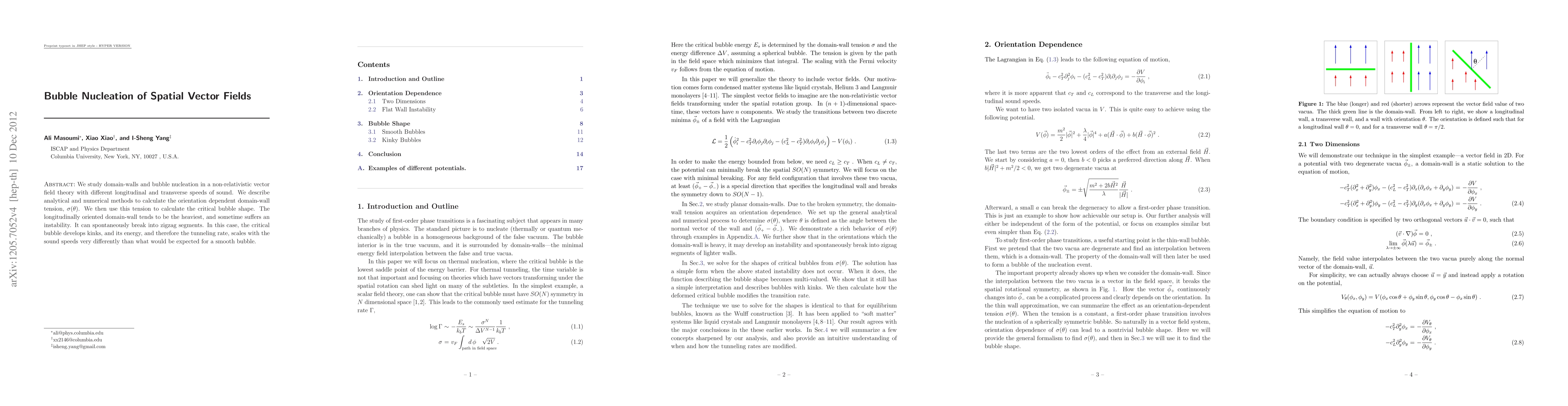 We study domain-walls and bubble nucleation in a non-relativistic vector field theory with different longitudinal and transverse speeds of sound. We describe analytical and numerical methods to calculate the orientation dependent domain-wall tension, $\sigma(\theta)$. We then use this tension to calculate the critical bubble shape. The longitudinally oriented domain-wall tends to be the heaviest, and sometime suffers an instability. It can spontaneously break into zigzag segments. In this case, the critical bubble develops kinks, and its energy, and therefore the tunneling rate, scales with the sound speeds very differently than what would be expected for a smooth bubble.