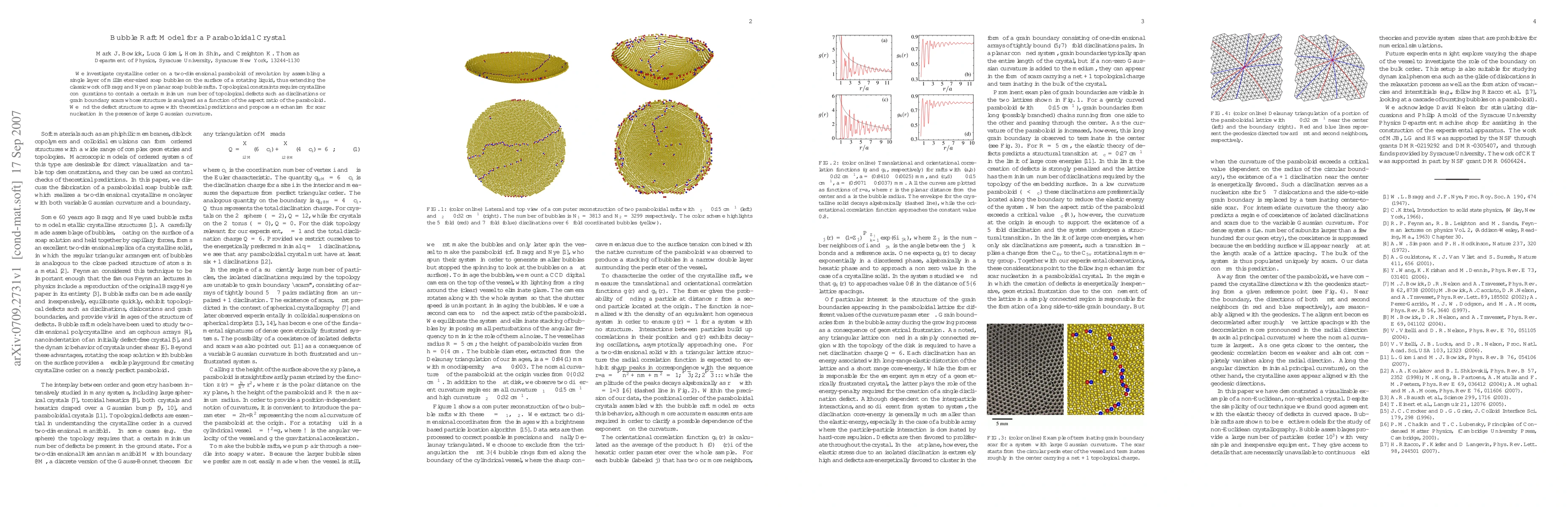 We investigate crystalline order on a two-dimensional paraboloid of revolution by assembling a single layer of millimeter-sized soap bubbles on the surface of a rotating liquid, thus extending the classic work of Bragg and Nye on planar soap bubble rafts. Topological constraints require crystalline configurations to contain a certain minimum number of topological defects such as disclinations or grain boundary scars whose structure is analyzed as a function of the aspect ratio of the paraboloid. We find the defect structure to agree with theoretical predictions and propose a mechanism for scar nucleation in the presence of large Gaussian curvature.