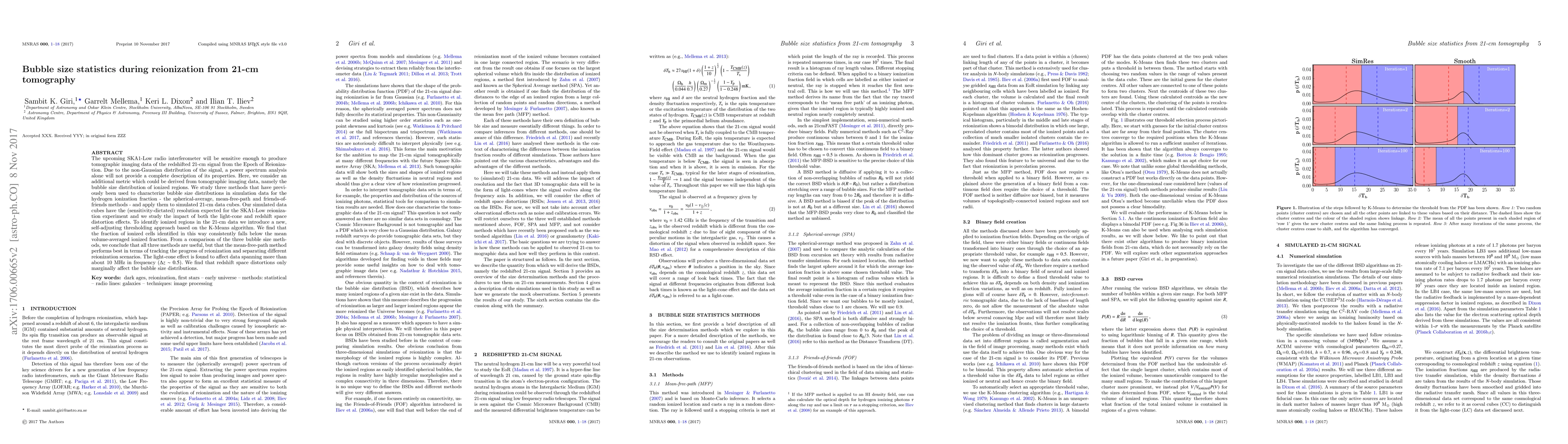 This paper investigates methods to characterize the bubble size distribution of ionized regions during reionization using 21-cm tomography data from the SKA1-Low. The mean-free-path method is identified as the most effective for tracking reionization progress, while light-cone effects impact data over $\Delta z\sim0.5$. Redshift space distortions have minimal influence on bubble size distributions.
