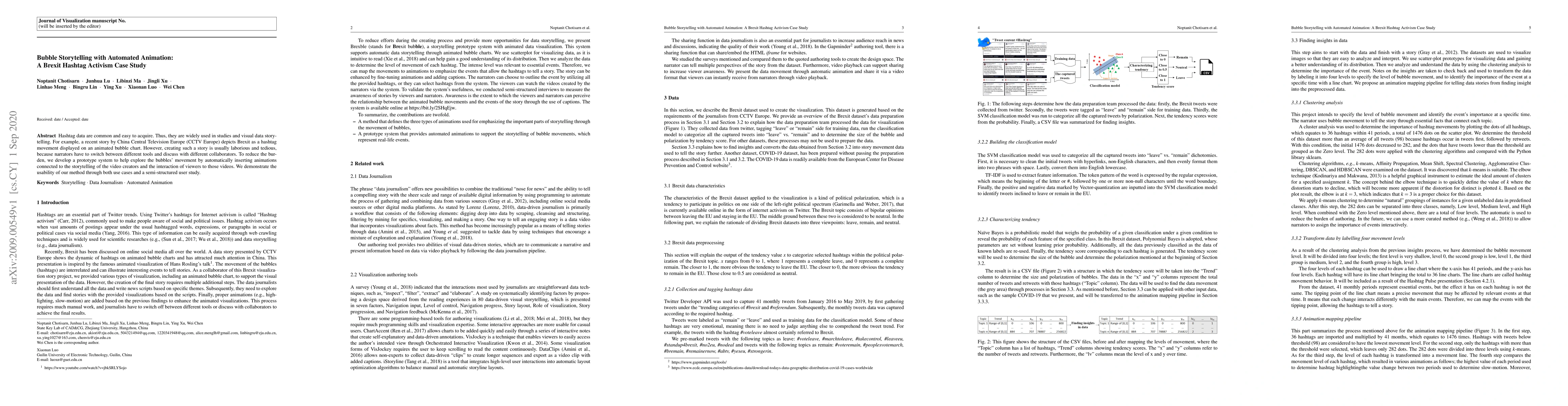 Hashtag data are common and easy to acquire. Thus, they are widely used in studies and visual data storytelling. For example, a recent story by China Central Television Europe (CCTV Europe) depicts Brexit as a hashtag movement displayed on an animated bubble chart. However, creating such a story is usually laborious and tedious, because narrators have to switch between different tools and discuss with different collaborators. To reduce the burden, we develop a prototype system to help explore the bubbles' movement by automatically inserting animations connected to the storytelling of the video creators and the interaction of viewers to those videos. We demonstrate the usability of our method through both use cases and a semi-structured user study.