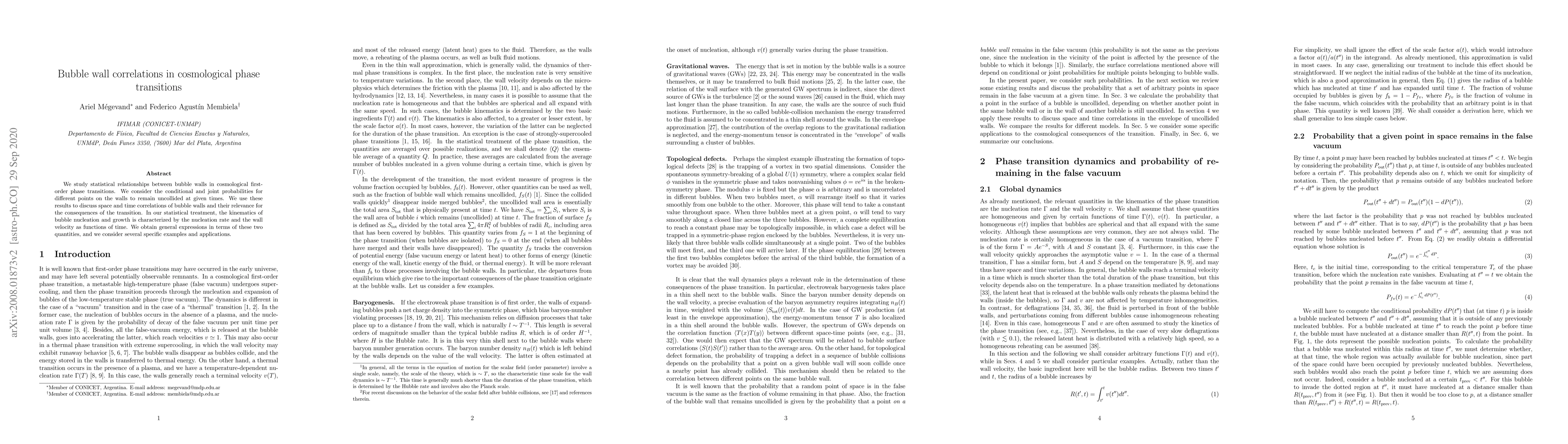 This paper investigates statistical correlations between bubble walls in cosmological first-order phase transitions, focusing on the probabilities of uncollided bubble walls at specific times. It derives general expressions for space and time correlations based on nucleation rate and wall velocity, and applies these findings to various examples.