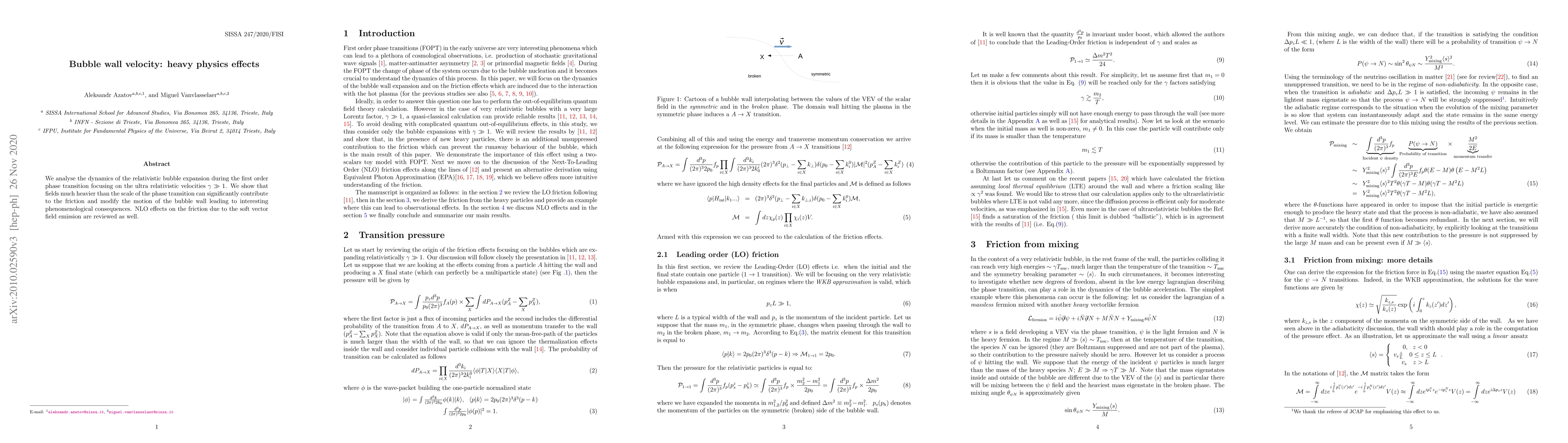 We analyse the dynamics of the relativistic bubble expansion during the first order phase transition focusing on the ultra relativistic velocities $\gamma\gg 1$. We show that fields much heavier than the scale of the phase transition can significantly contribute to the friction and modify the motion of the bubble wall leading to interesting phenomenological consequences. NLO effects on the friction due to the soft vector field emission are reviewed as well.