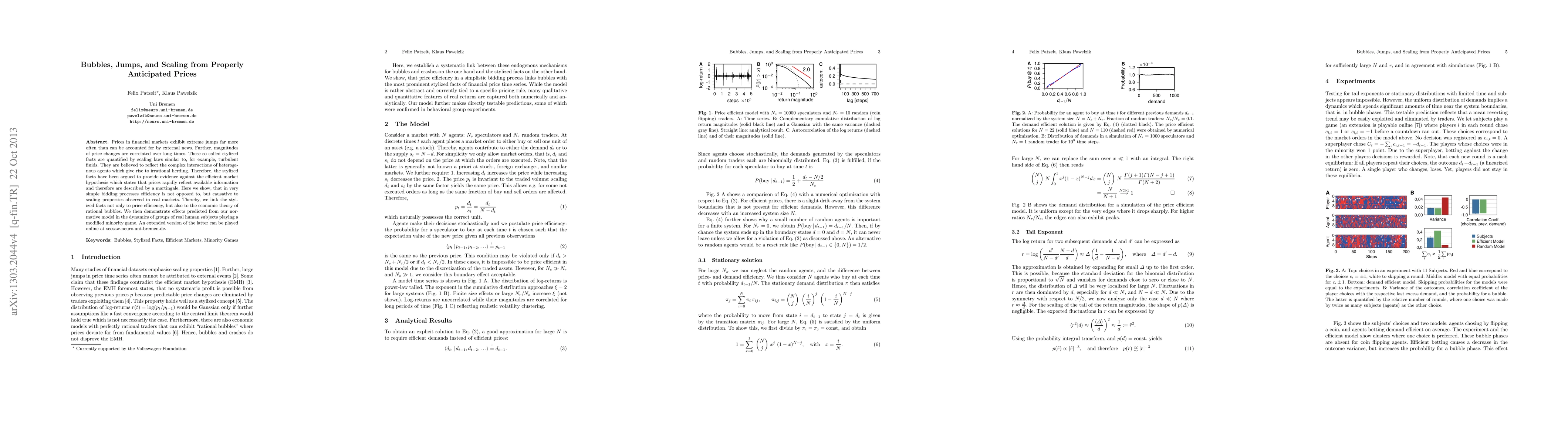 Prices in financial markets exhibit extreme jumps far more often than can be accounted for by external news. Further, magnitudes of price changes are correlated over long times. These so called stylized facts are quantified by scaling laws similar to, for example, turbulent fluids. They are believed to reflect the complex interactions of heterogenous agents which give rise to irrational herding. Therefore, the stylized facts have been argued to provide evidence against the efficient market hypothesis which states that prices rapidly reflect available information and therefore are described by a martingale. Here we show, that in very simple bidding processes efficiency is not opposed to, but causative to scaling properties observed in real markets. Thereby, we link the stylized facts not only to price efficiency, but also to the economic theory of rational bubbles. We then demonstrate effects predicted from our normative model in the dynamics of groups of real human subjects playing a modified minority game. An extended version of the latter can be played online at seesaw.neuro.uni-bremen.de.