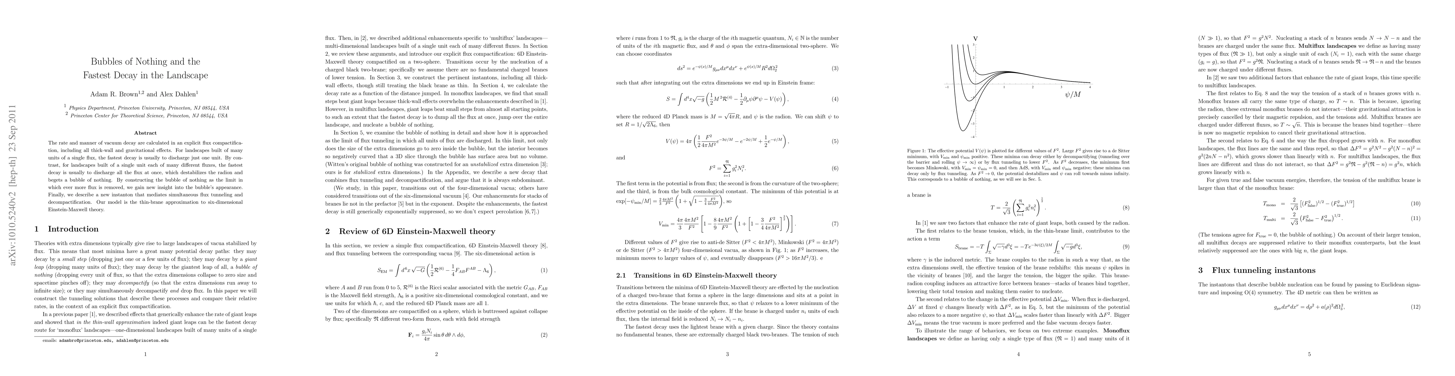 The rate and manner of vacuum decay are calculated in an explicit flux compactification, including all thick-wall and gravitational effects. For landscapes built of many units of a single flux, the fastest decay is usually to discharge just one unit. By contrast, for landscapes built of a single unit each of many different fluxes, the fastest decay is usually to discharge all the flux at once, which destabilizes the radion and begets a bubble of nothing. By constructing the bubble of nothing as the limit in which ever more flux is removed, we gain new insight into the bubble's appearance. Finally, we describe a new instanton that mediates simultaneous flux tunneling and decompactification. Our model is the thin-brane approximation to six-dimensional Einstein-Maxwell theory.