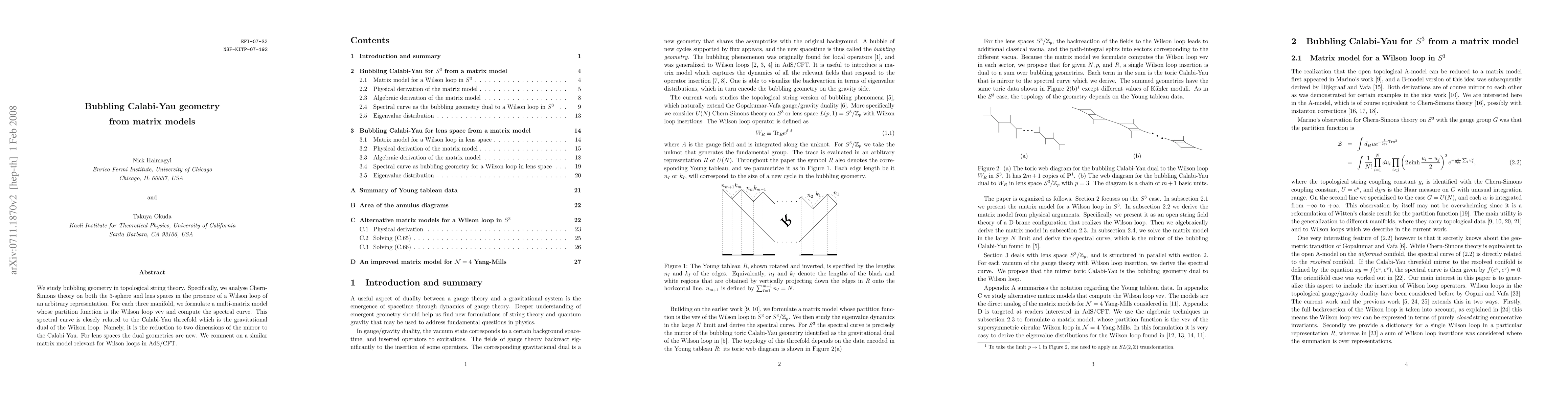 We study bubbling geometry in topological string theory. Specifically, we analyse Chern-Simons theory on both the 3-sphere and lens spaces in the presence of a Wilson loop insertion of an arbitrary representation. For each of these three manifolds we formulate a multi-matrix model whose partition function is the vev of the Wilson loop and compute the spectral curve. This spectral curve is the reduction to two dimensions of the mirror to a Calabi-Yau threefold which is the gravitational dual of the Wilson loop insertion. For lens spaces the dual geometries are new. We comment on a similar matrix model which appears in the context of Wilson loops in AdS/CFT.
