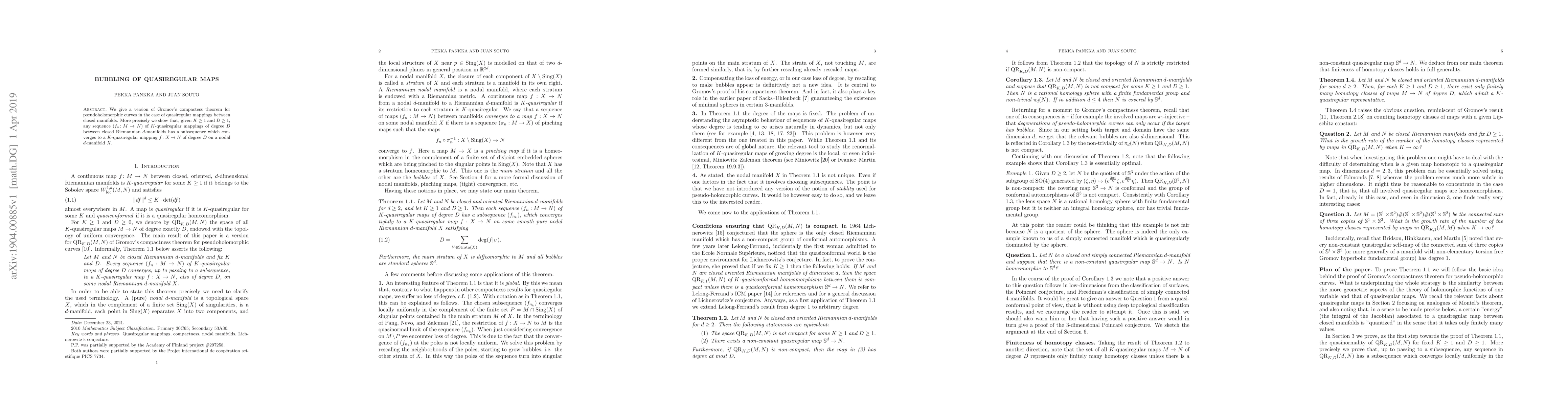 This paper extends Gromov's compactness theorem to quasiregular mappings, proving that a sequence of $K$-quasiregular maps of degree $D$ between closed Riemannian manifolds converges to a $K$-quasiregular map on a nodal manifold. The result highlights bubbling behavior in quasiregular maps.