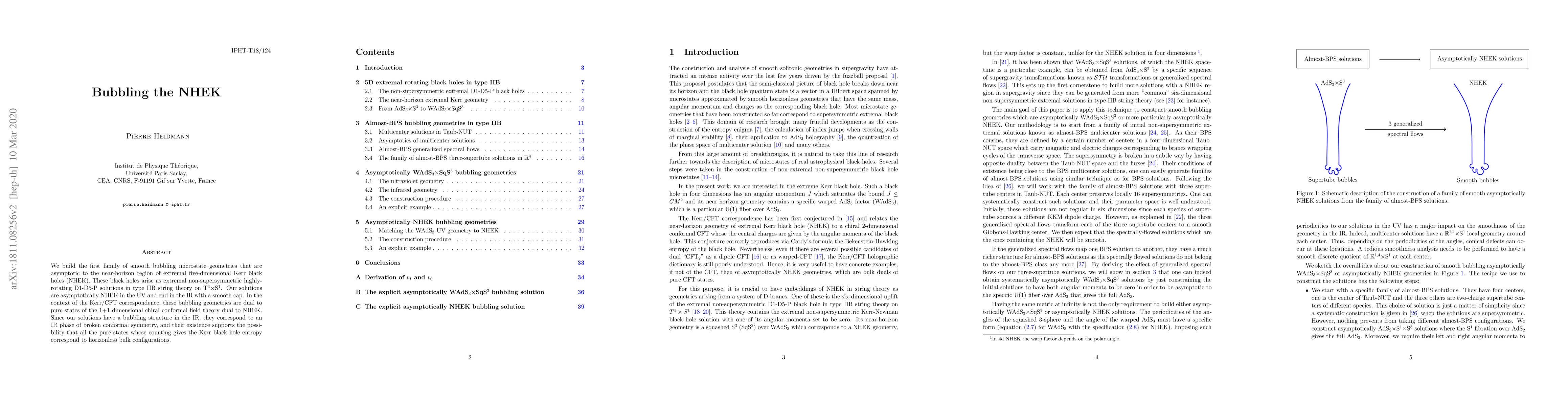 We build the first family of smooth bubbling microstate geometries that are asymptotic to the near-horizon region of extremal five-dimensional Kerr black holes (NHEK). These black holes arise as extremal non-supersymmetric highly-rotating D1-D5-P solutions in type IIB string theory on T$^4\times$S$^1$. Our solutions are asymptotically NHEK in the UV and end in the IR with a smooth cap. In the context of the Kerr/CFT correspondence, these bubbling geometries are dual to pure states of the 1+1 dimensional chiral conformal field theory dual to NHEK. Since our solutions have a bubbling structure in the IR, they correspond to an IR phase of broken conformal symmetry, and their existence supports the possibility that all the pure states whose counting gives the Kerr black hole entropy correspond to horizonless bulk configurations.