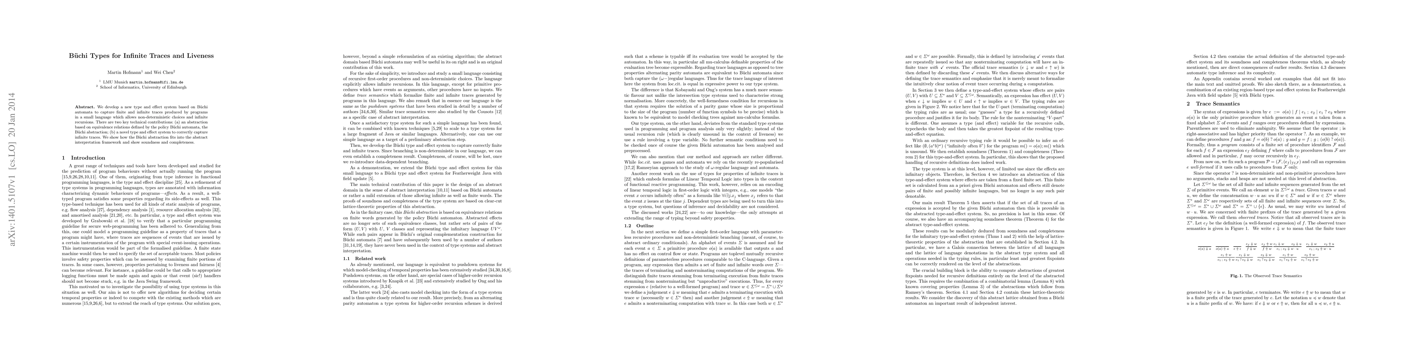 Researchers develop a new type and effect system to capture finite and infinite traces produced by programs in a small language with non-deterministic choices and infinite recursions, using B"uchi automata.