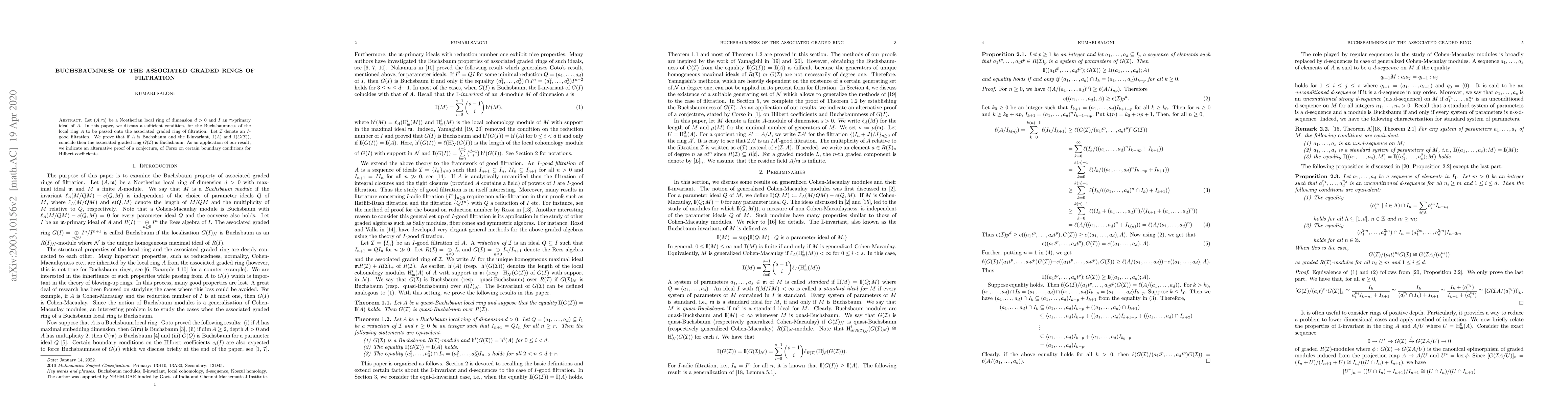 Let $(A,\mathfrak{m})$ be a Noetherian local ring of dimension $d>0$ and $I$ an $\mathcal{I}$-primary ideal of $A$. In this paper, we discuss a sufficient condition, for the Buchsbaumness of the local ring $A$ to be passed onto the associated graded ring of filtration. Let $\mathcal{I}$ denote an $I$-good filtration. We prove that if $A$ is Buchsbaum and the I-invariant, $I(A)$ and $I(G(\mathcal{I}))$, coincide then the associated graded ring $G(\mathcal{I})$ is Buchsbaum. As an application of our result, we indicate an alternative proof of a conjecture, of Corso on certain boundary conditions for Hilbert coefficients.