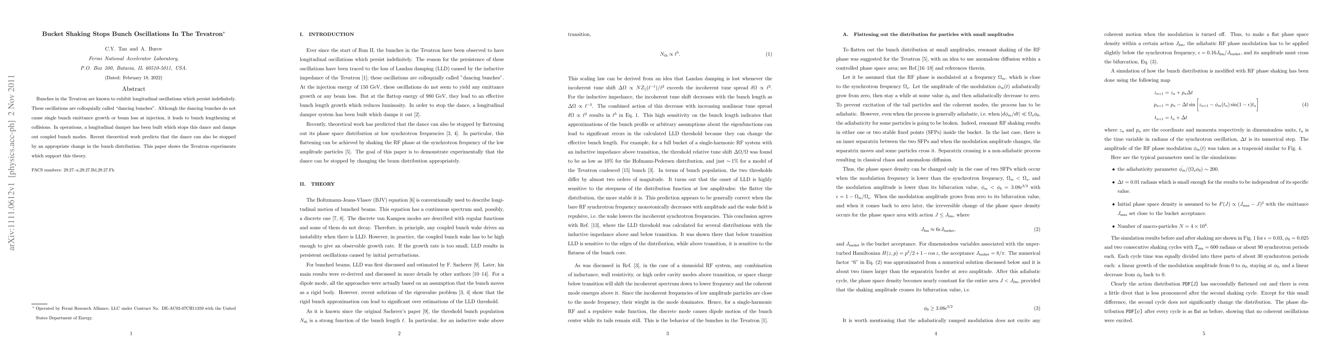This paper demonstrates that bucket shaking, a technique altering the bunch distribution, effectively halts the longitudinal oscillations, or "dancing bunches," in the Tevatron, thereby preventing bunch lengthening during collisions, as supported by experimental results.