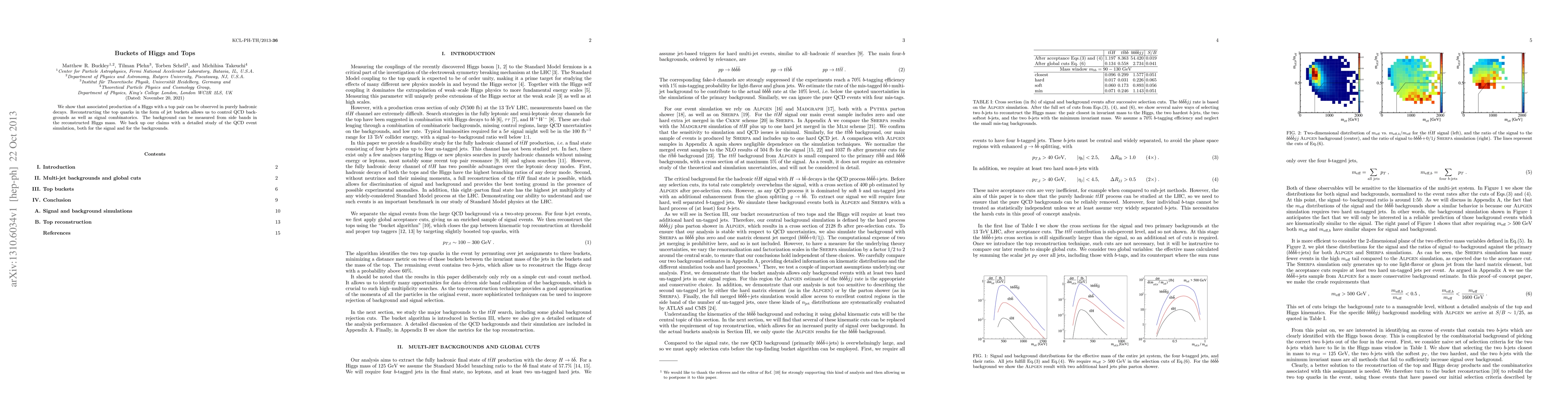 We show that associated production of a Higgs with a top pair can be observed in purely hadronic decays. Reconstructing the top quarks in the form of jet buckets allows us to control QCD backgrounds as well as signal combinatorics. The background can be measured from side bands in the reconstructed Higgs mass. We back up our claims with a detailed study of the QCD event simulation, both for the signal and for the backgrounds.