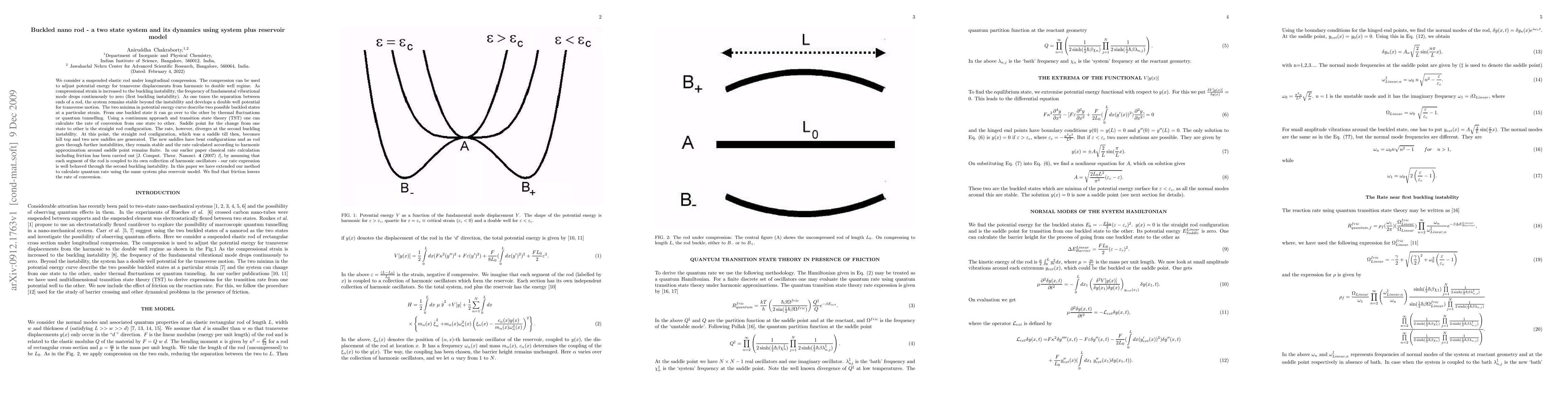 We consider a suspended elastic rod under longitudinal compression. The compression can be used to adjust potential energy for transverse displacements from harmonic to double well regime. As compressional strain is increased to the buckling instability, the frequency of fundamental vibrational mode drops continuously to zero (first buckling instability). As one tunes the separation between ends of a rod, the system remains stable beyond the instability and develops a double well potential for transverse motion. The two minima in potential energy curve describe two possible buckled states at a particular strain. From one buckled state it can go over to the other by thermal fluctuations or quantum tunnelling. Using a continuum approach and transition state theory (TST) one can calculate the rate of conversion from one state to other. Saddle point for the change from one state to other is the straight rod configuration. The rate, however, diverges at the second buckling instability. At this point, the straight rod configuration, which was a saddle till then, becomes hill top and two new saddles are generated. The new saddles have bent configurations and as rod goes through further instabilities, they remain stable and the rate calculated according to harmonic approximation around saddle point remains finite. In our earlier paper classical rate calculation including friction has been carried out [J. Comput. Theor. Nanosci. {\bf 4} (2007) {\it 1}], by assuming that each segment of the rod is coupled to its own collection of harmonic oscillators - our rate expression is well behaved through the second buckling instability. In this paper we have extended our method to calculate quantum rate using the same system plus reservoir model. We find that friction lowers the rate of conversion.