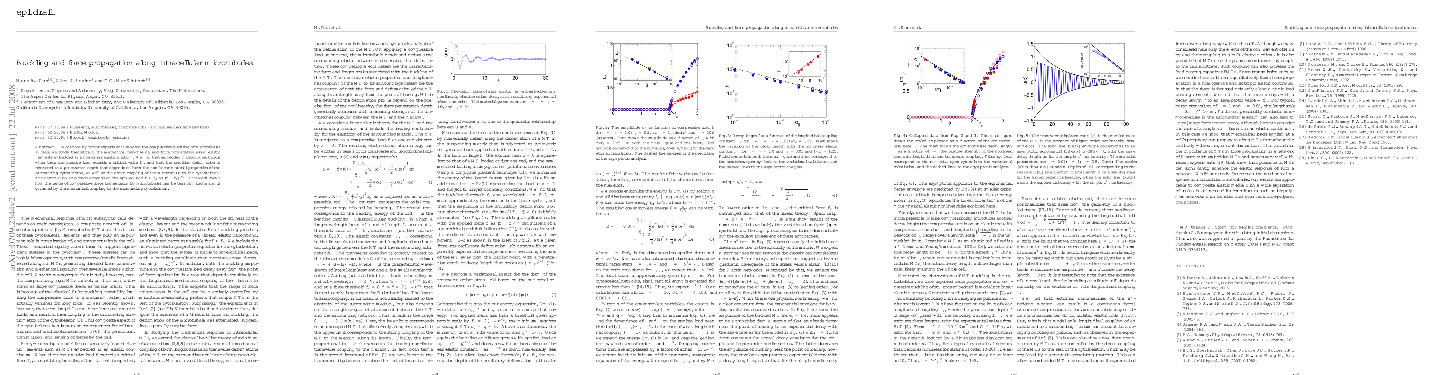 This paper investigates the mechanical response and force propagation along intracellular microtubules, finding that buckling occurs when compressive load exceeds a critical value, but deformation is limited by the non-linear properties of the cytoskeleton and the coupling between microtubules and the cytoskeleton. The deformation amplitude scales with the applied load, demonstrating the significant range of force transmission by microtubules.
