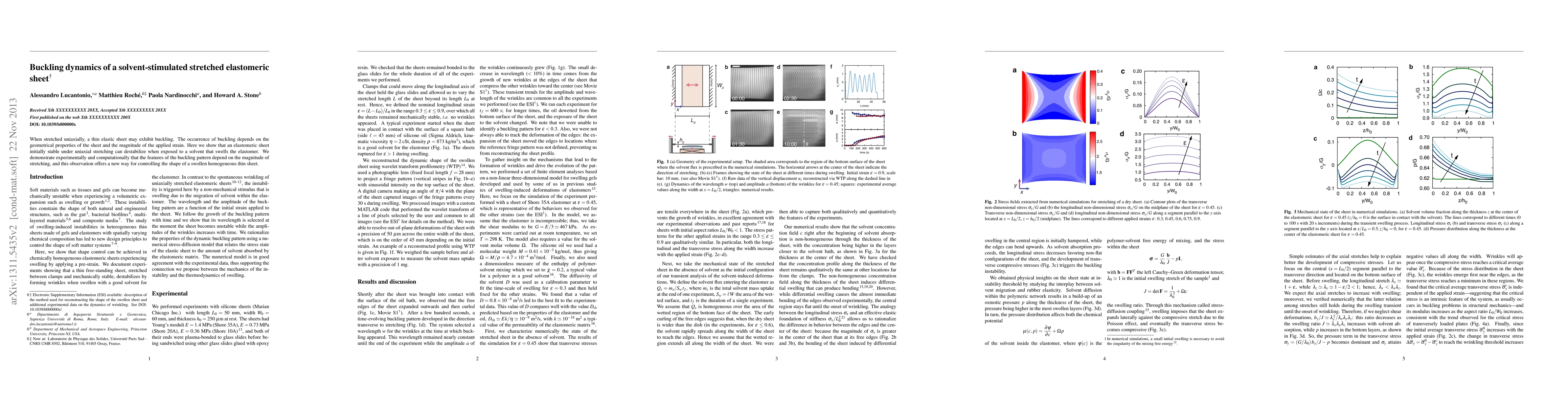Researchers found that an elastomeric sheet's stability under stretching changes when exposed to a solvent, allowing for controlled shape formation through buckling dynamics.