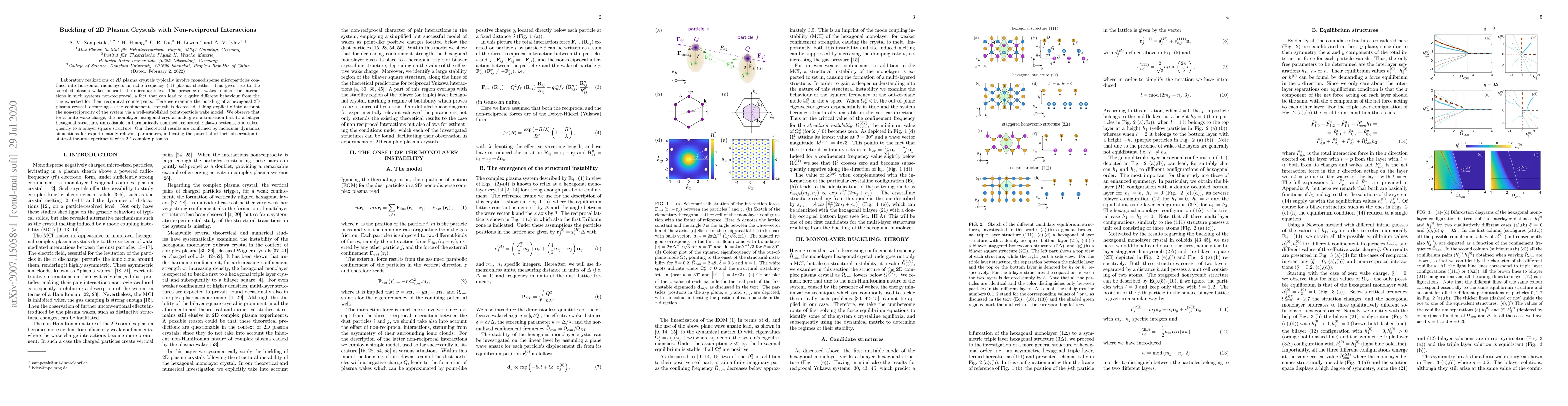 This paper investigates the buckling behavior of 2D plasma crystals under non-reciprocal interactions, revealing a transition from a hexagonal to a bilayer hexagonal and then to a bilayer square structure as confinement strength decreases, confirmed by molecular dynamics simulations.