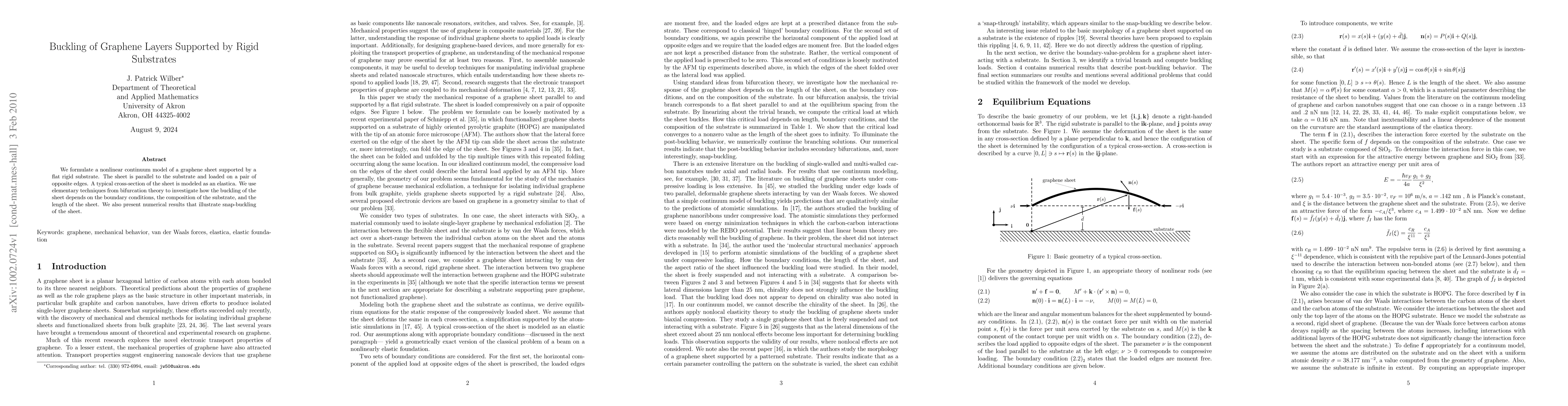 We formulate a nonlinear continuum model of a graphene sheet supported by a flat rigid substrate. The sheet is parallel to the substrate and loaded on a pair of opposite edges. A typical cross-section of the sheet is modeled as an elastica. We use elementary techniques from bifurcation theory to investigate how the buckling of the sheet depends on the boundary conditions, the composition of the substrate, and the length of the sheet. We also present numerical results that illustrate snap-buckling of the sheet.