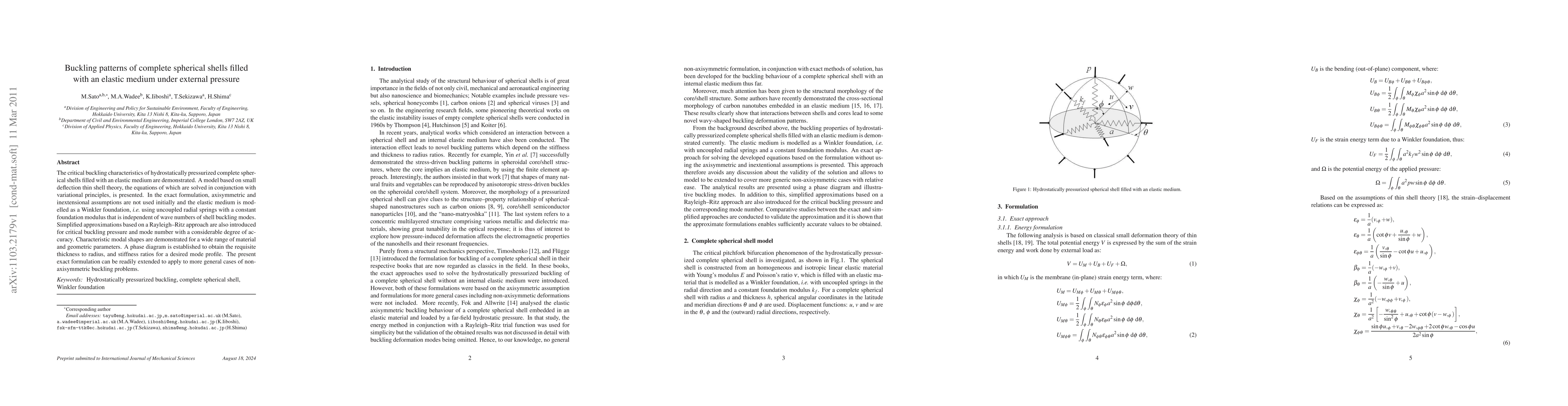This paper investigates the critical buckling characteristics of spherical shells filled with an elastic medium under external pressure, using a model based on thin shell theory and variational principles. The Winkler foundation model and Rayleigh-Ritz approximations provide accurate critical buckling pressure and mode number predictions, with a phase diagram aiding in determining requisite material and geometric parameters.