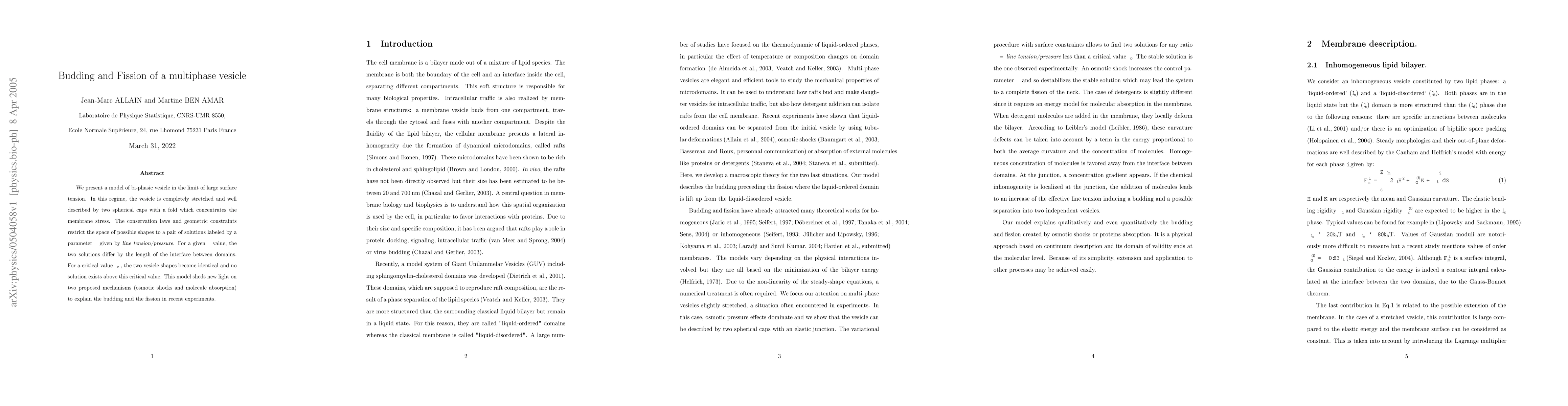 A model explains how a bi-phasic vesicle can bud and divide into two spheres, shedding light on mechanisms behind the process, which occur at a critical surface tension threshold.