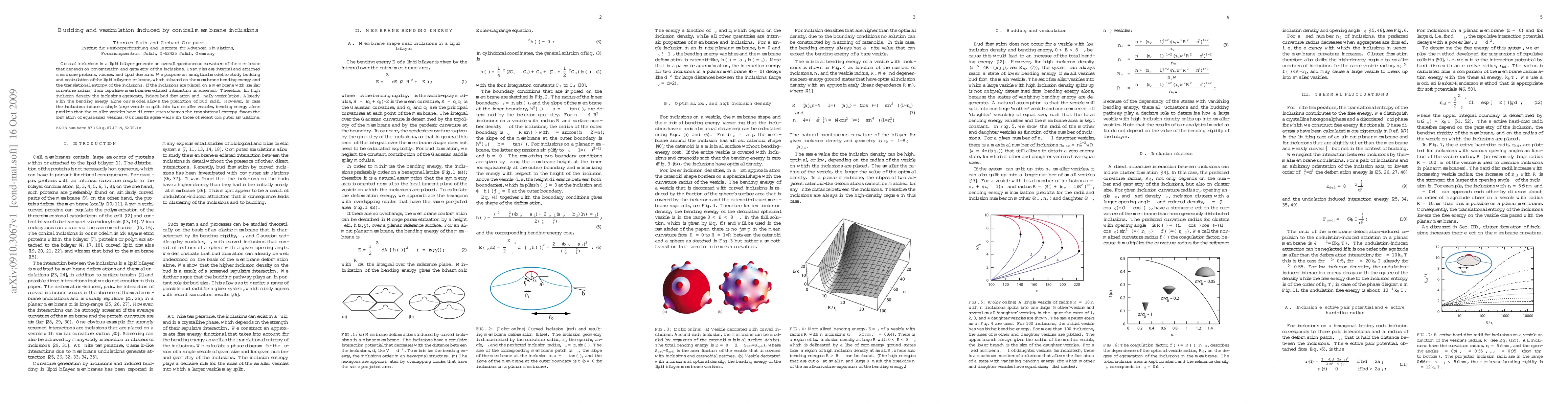 This paper proposes an analytical model to study how conical membrane inclusions like proteins and viruses induce budding and vesiculation in lipid bilayers, based on membrane bending energy and inclusion translational entropy. The model predicts that high inclusion density can lead to bud formation and vesiculation, with translational entropy favoring equal-sized vesicles upon splitting, agreeing with recent simulations.