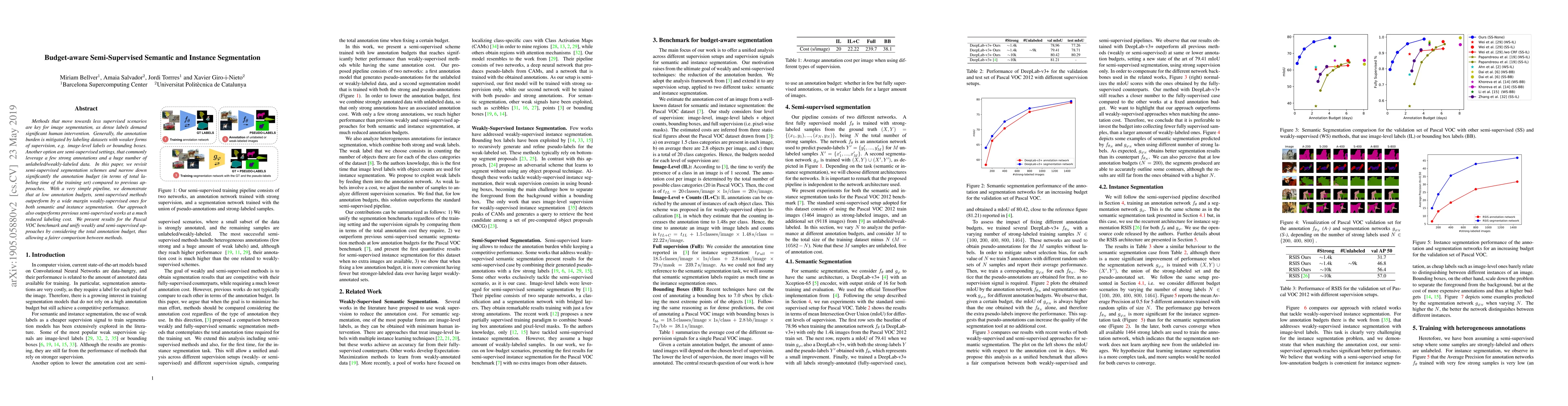 This paper proposes a budget-aware semi-supervised method for semantic and instance segmentation that significantly reduces annotation effort compared to previous methods. The approach outperforms weakly-supervised techniques and previous semi-supervised works at a lower labeling cost, demonstrated on the Pascal VOC benchmark.