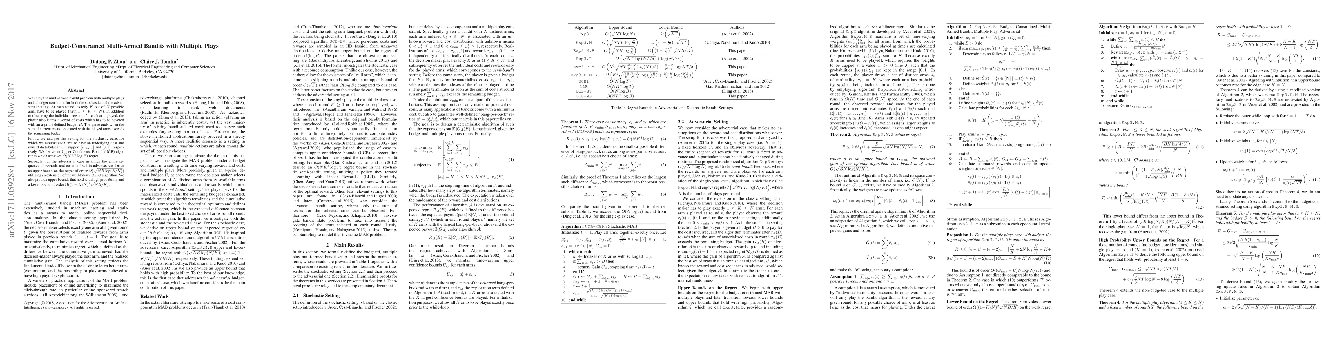 This paper explores a variant of the multi-armed bandit problem with multiple plays and a budget constraint, providing upper bounds on regret for both stochastic and adversarial settings.
