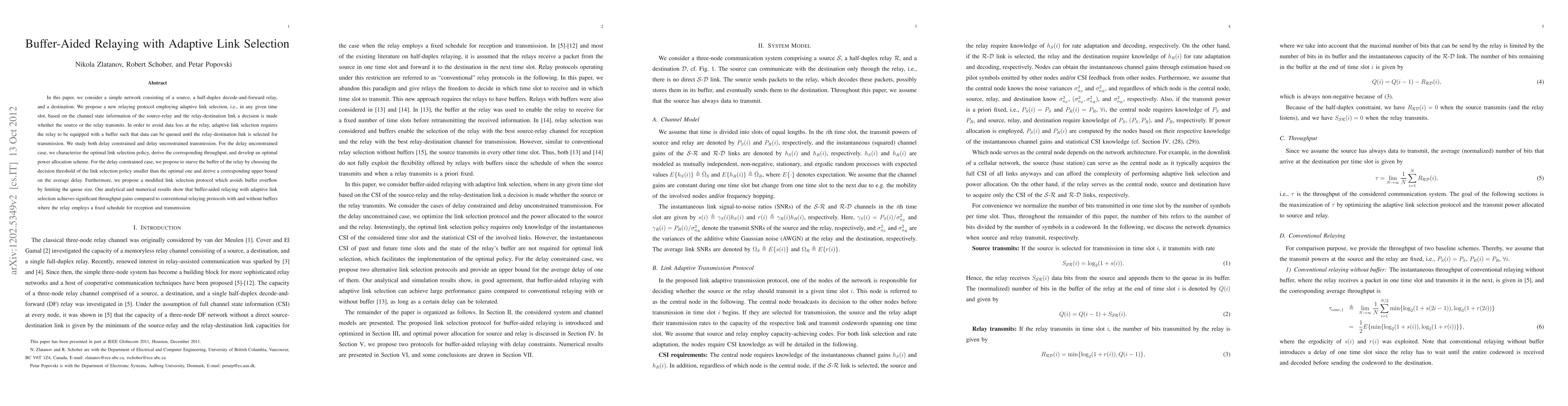This paper proposes a buffer-aided relaying protocol with adaptive link selection to optimize throughput and delay. It develops optimal policies for both delay-constrained and unconstrained scenarios, showing significant gains over traditional fixed-schedule relaying methods.