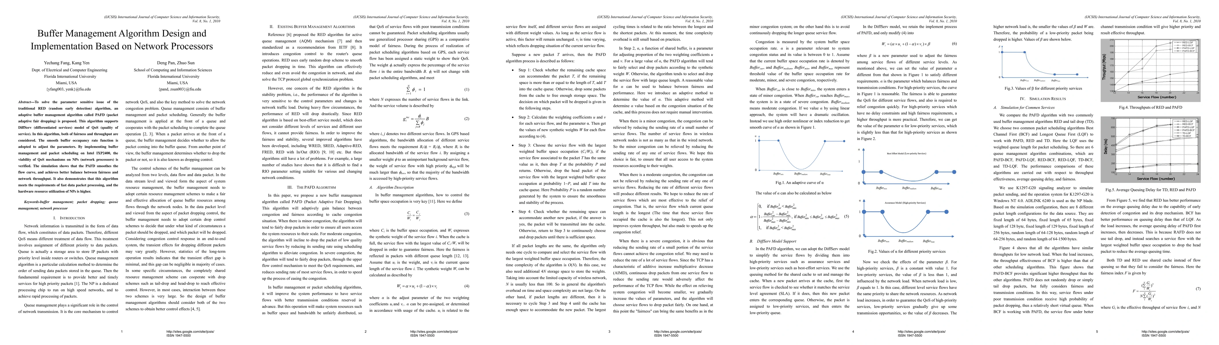 A new buffer management algorithm called PAFD is proposed to improve fairness and throughput in networks, and its implementation on Intel IXP2400 network processors shows promising results.
