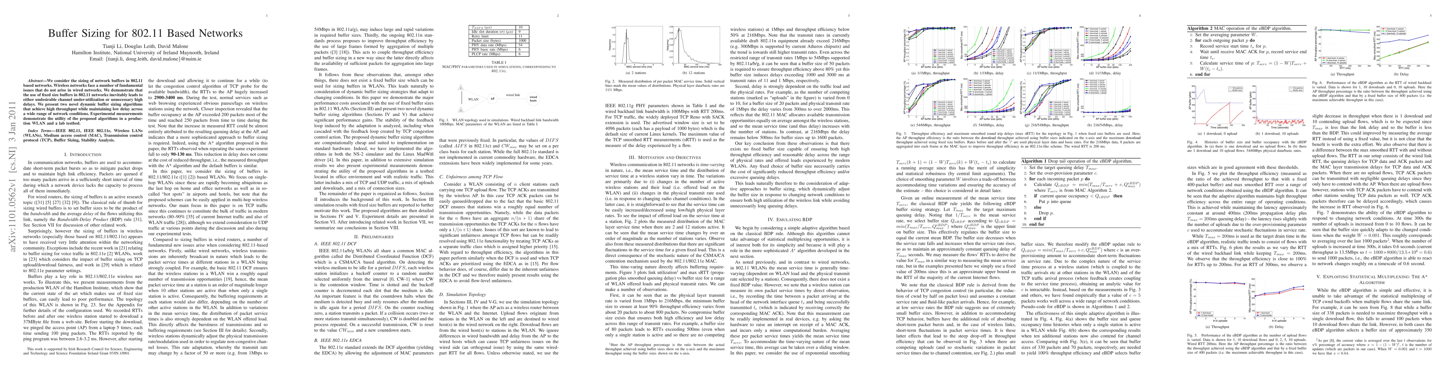 This paper proposes dynamic buffer sizing algorithms for 802.11 networks to optimize throughput and minimize delays, addressing the unique challenges of wireless networks. Experimental results show the effectiveness of the algorithms in both production and lab settings.