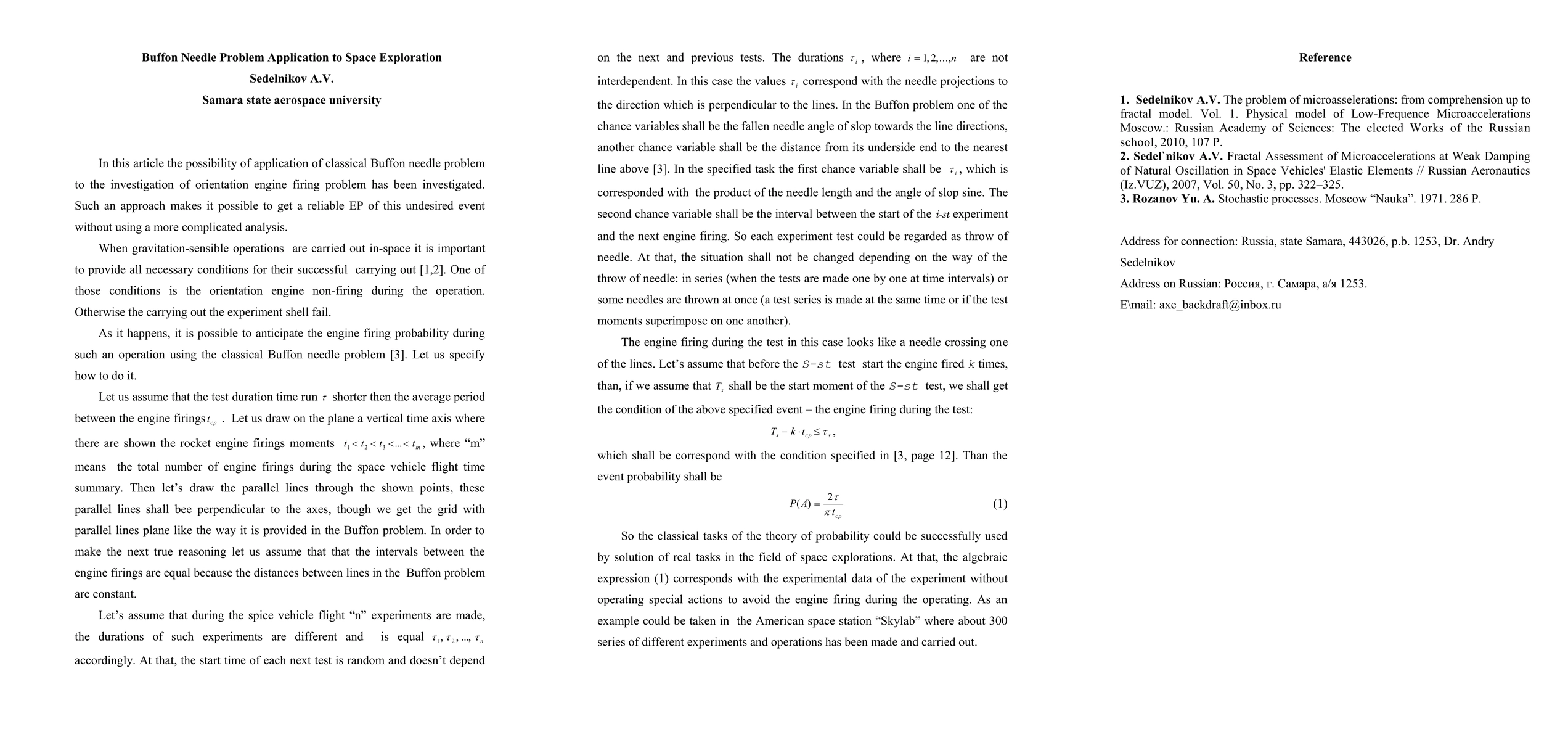 Researchers explored using the Buffon needle problem to analyze orientation engine firing problems in space exploration, offering a simpler approach to predict undesired events.