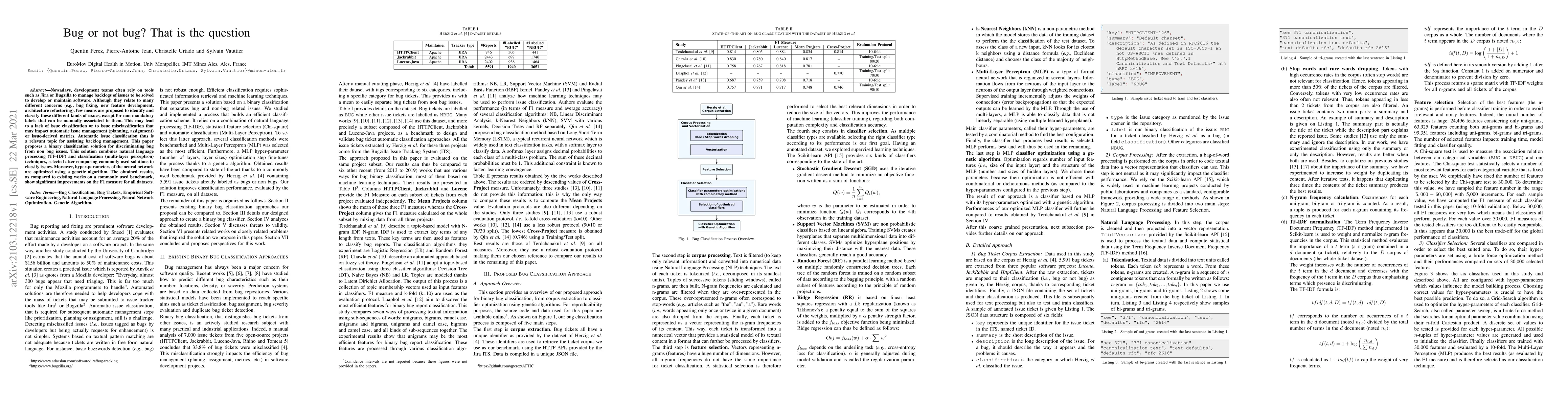 This paper proposes a binary classification method using natural language processing and a multi-layer perceptron to distinguish between bug and non-bug issues in software development. The method, optimized with a genetic algorithm, shows significant improvements in F1 measure compared to existing solutions.