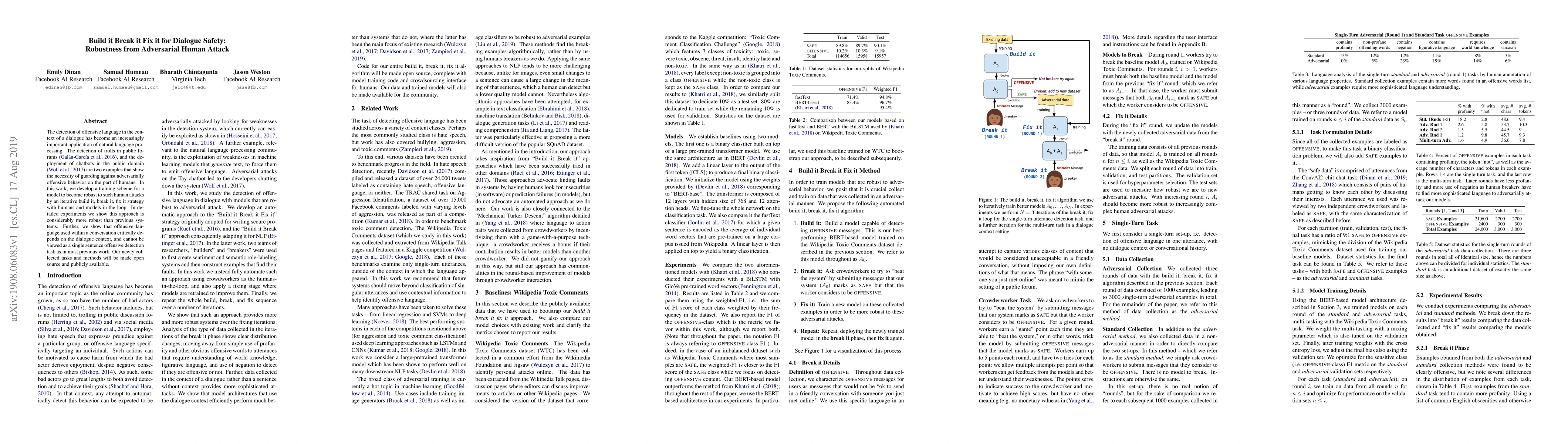 This paper proposes a training scheme using an iterative build it, break it, fix it strategy to develop robust models against adversarially offensive human behavior in dialogues. The approach demonstrates significantly higher robustness compared to previous systems and emphasizes the importance of context in detecting offensive language.