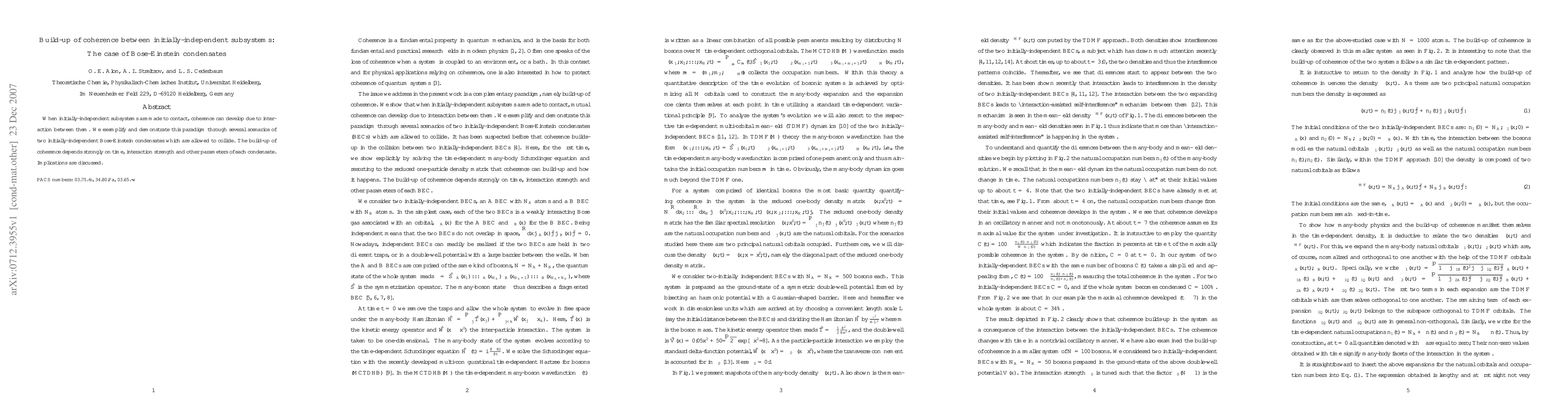Researchers studied how initially-independent systems of Bose-Einstein condensates interact when brought together, finding that coherence can develop over time depending on factors such as interaction strength and parameters of each condensate.