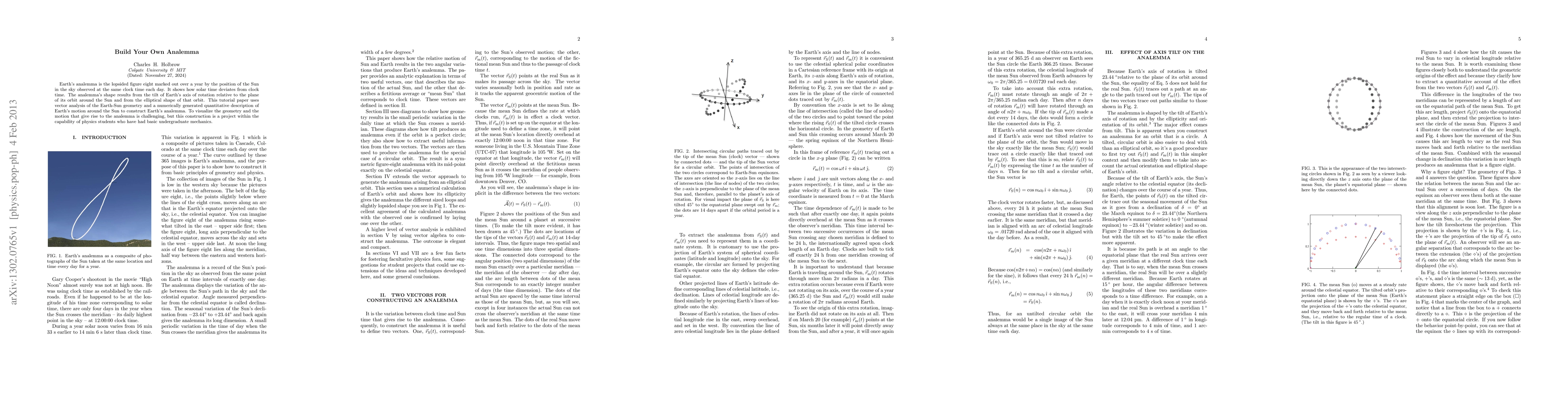 Earth's analemma is the lopsided figure eight marked out over a year by the position of the Sun in the sky observed at the same clock time each day. It shows how solar time deviates from clock time. The analemma's shape results from the tilt of Earth's axis of rotation relative to the plane of its orbit around the Sun and from the elliptical shape of that orbit. This tutorial paper uses vector analysis of the Earth-Sun geometry and a numerically generated quantitative description of Earth's motion around the Sun to construct Earth's analemma. To visualize the geometry and the motion that give rise to the analemma is challenging, but this construction is a project within the capability of physics students who have had basic undergraduate mechanics.