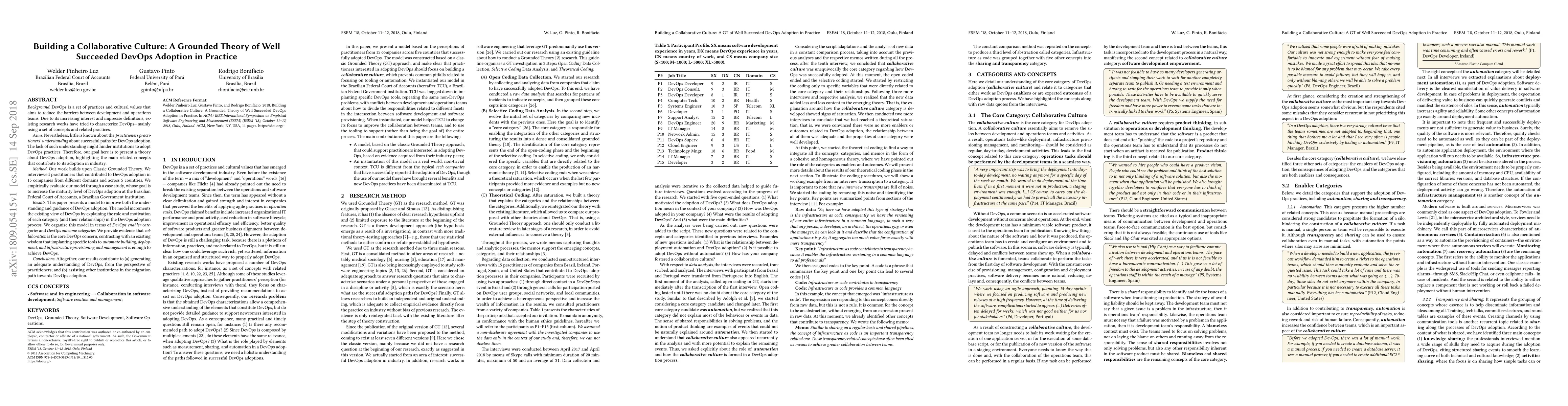 This paper develops a grounded theory on successful DevOps adoption through interviews with practitioners across 15 companies, emphasizing that collaboration is central to DevOps success rather than just tool implementation. The study provides a model with DevOps enabler and outcome categories to guide institutions in their DevOps migration.