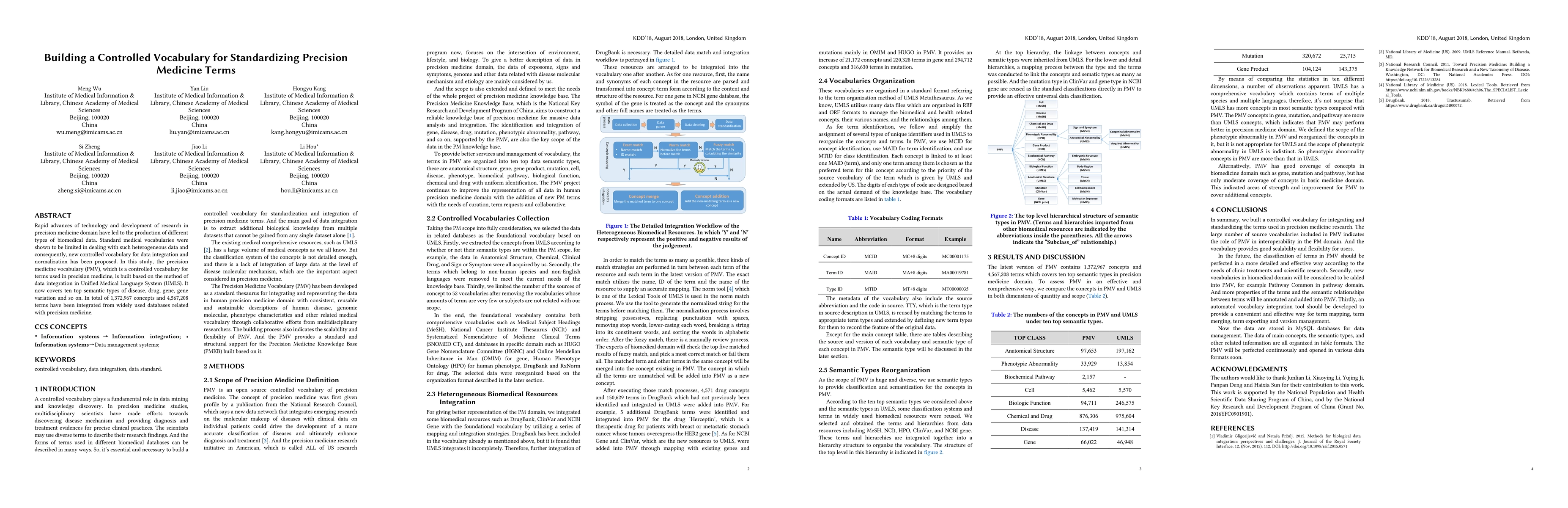 This paper proposes the Precision Medicine Vocabulary (PMV) to standardize terms in the precision medicine domain, integrating 1,372,967 concepts and 4,567,208 terms from various databases to address the limitations of existing medical vocabularies. The PMV aims to facilitate data integration and normalization in precision medicine research.
