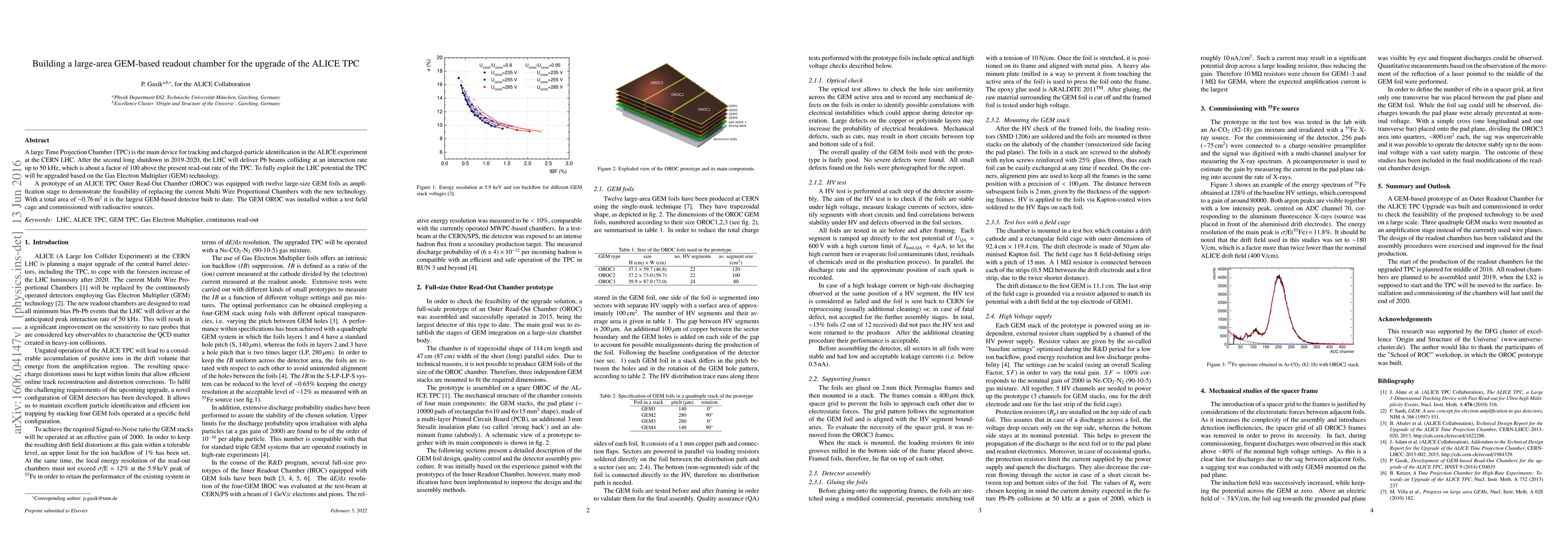 A large Time Projection Chamber (TPC) is the main device for tracking and charged-particle identification in the ALICE experiment at the CERN LHC. After the second long shutdown in 2019-2020, the LHC will deliver Pb beams colliding at an interaction rate up to 50 kHz, which is about a factor of 100 above the present read-out rate of the TPC. To fully exploit the LHC potential the TPC will be upgraded based on the Gas Electron Multiplier (GEM) technology. A prototype of an ALICE TPC Outer Read-Out Chamber (OROC) was equipped with twelve large-size GEM foils as amplification stage to demonstrate the feasibility of replacing the current Multi Wire Proportional Chambers with the new technology. With a total area of $\sim$0.76 m$^2$ it is the largest GEM-based detector built to date. The GEM OROC was installed within a test field cage and commissioned with radioactive sources.