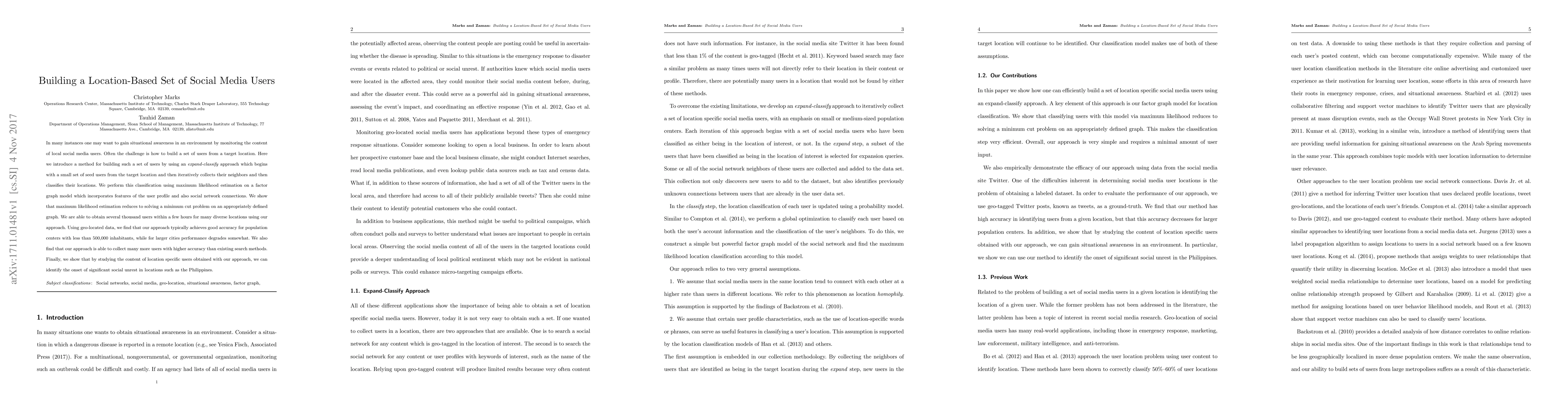 Researchers developed a method to collect location-based social media users from target locations using an expand-classify approach, achieving accuracy for smaller cities but degrading performance in larger ones. The method was shown to identify the onset of social unrest in specific locations like the Philippines.