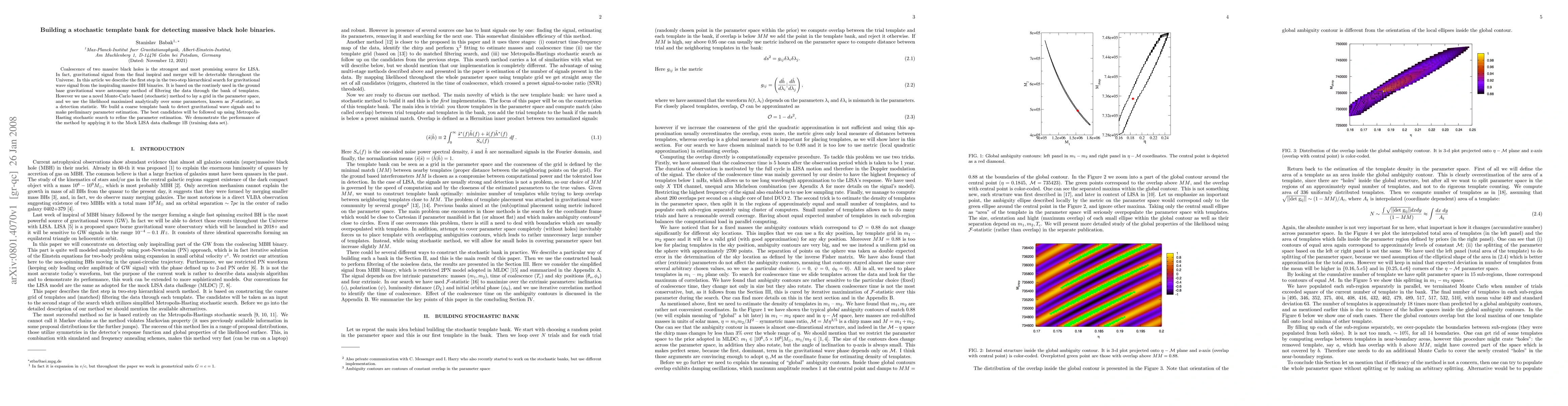 This paper introduces a novel stochastic template bank method for detecting gravitational wave signals from massive black hole binaries using LISA. The method employs a Monte-Carlo approach to create a grid in parameter space and uses the F-statistic for detection, demonstrating its effectiveness on a training dataset.