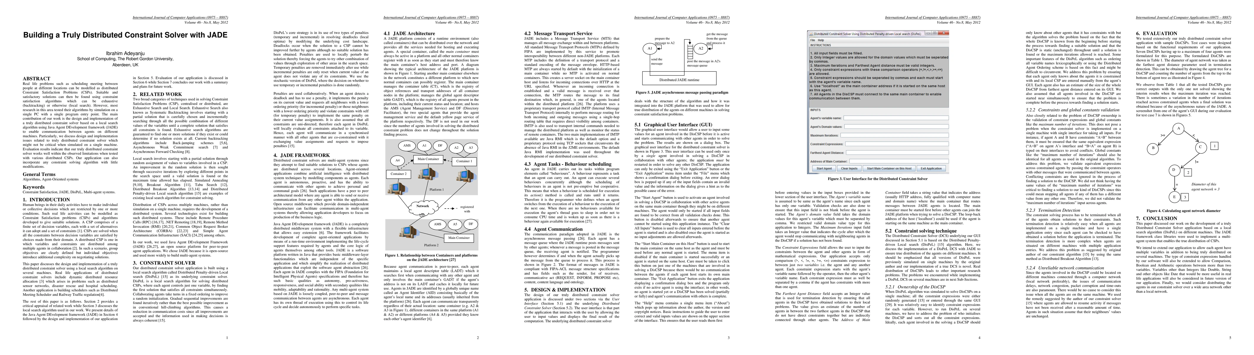 The paper details the design and implementation of a distributed constraint solver using JADE, focusing on local search algorithms and addressing issues unique to distributed environments.