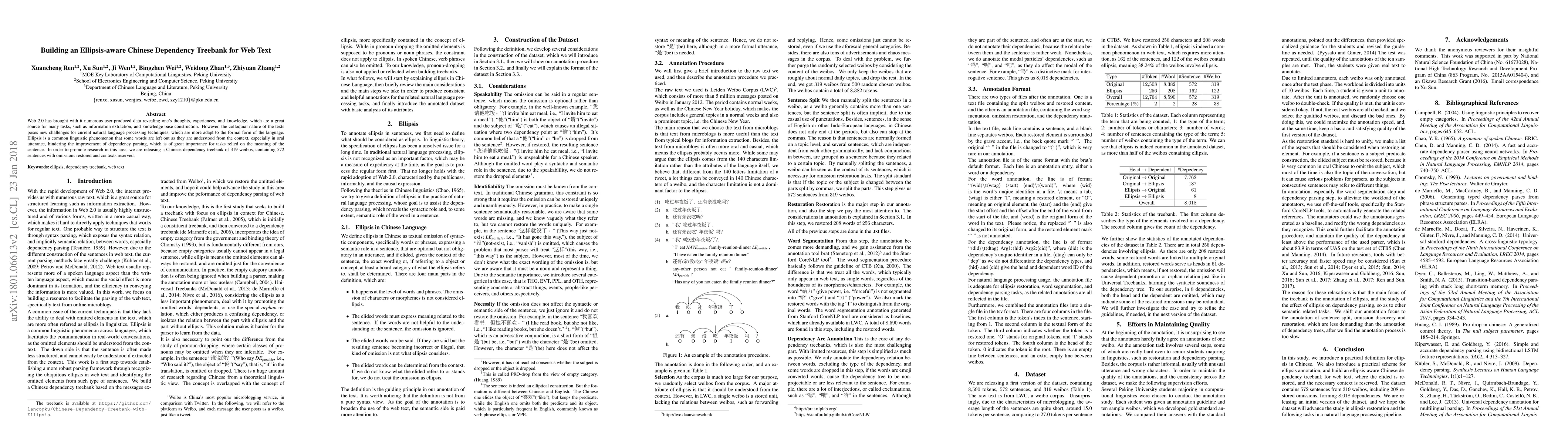 The dataset, containing 572 sentences with omissions restored, aims to improve research on dependency parsing and its applications in information extraction and knowledge base construction.