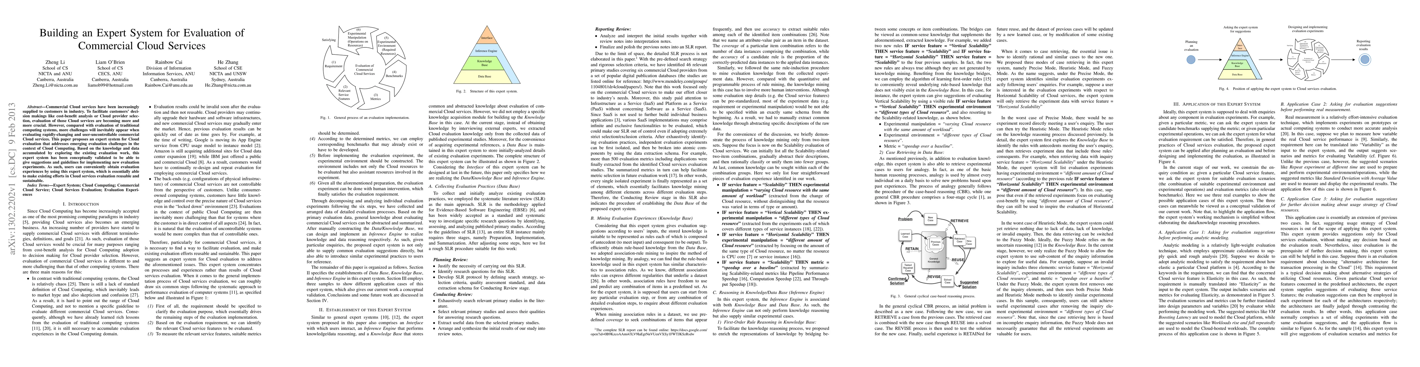 Commercial Cloud services have been increasingly supplied to customers in industry. To facilitate customers' decision makings like cost-benefit analysis or Cloud provider selection, evaluation of those Cloud services are becoming more and more crucial. However, compared with evaluation of traditional computing systems, more challenges will inevitably appear when evaluating rapidly-changing and user-uncontrollable commercial Cloud services. This paper proposes an expert system for Cloud evaluation that addresses emerging evaluation challenges in the context of Cloud Computing. Based on the knowledge and data accumulated by exploring the existing evaluation work, this expert system has been conceptually validated to be able to give suggestions and guidelines for implementing new evaluation experiments. As such, users can conveniently obtain evaluation experiences by using this expert system, which is essentially able to make existing efforts in Cloud services evaluation reusable and sustainable.