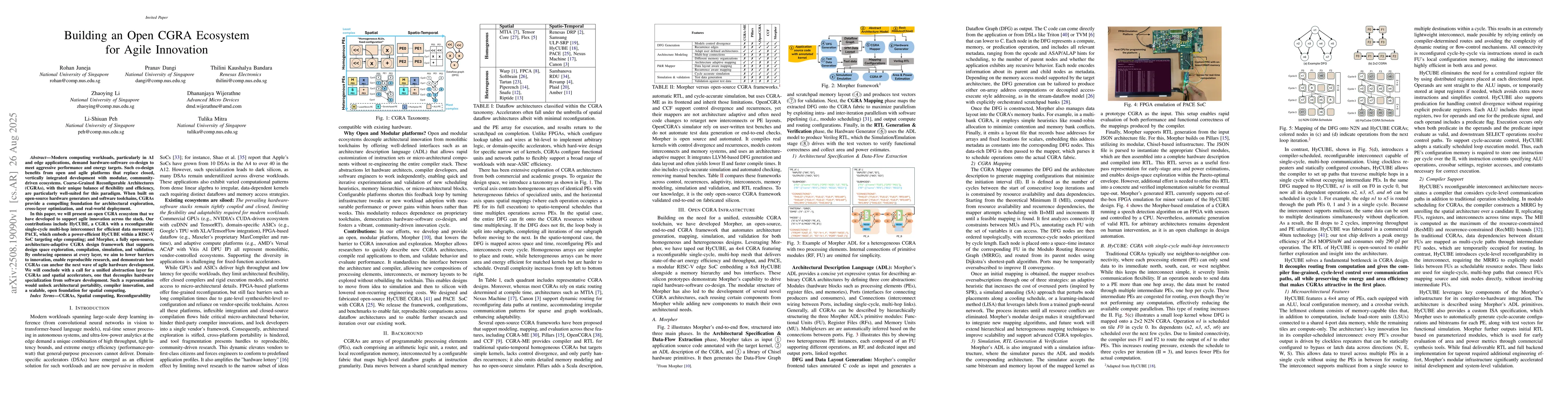 Modern computing workloads, particularly in AI and edge applications, demand hardware-software co-design to meet aggressive performance and energy targets. Such co-design benefits from open and agile platforms that replace closed, vertically integrated development with modular, community-driven ecosystems. Coarse-Grained Reconfigurable Architectures (CGRAs), with their unique balance of flexibility and efficiency are particularly well-suited for this paradigm. When built on open-source hardware generators and software toolchains, CGRAs provide a compelling foundation for architectural exploration, cross-layer optimization, and real-world deployment. In this paper, we will present an open CGRA ecosystem that we have developed to support agile innovation across the stack. Our contributions include HyCUBE, a CGRA with a reconfigurable single-cycle multi-hop interconnect for efficient data movement; PACE, which embeds a power-efficient HyCUBE within a RISC-V SoC targeting edge computing; and Morpher, a fully open-source, architecture-adaptive CGRA design framework that supports design space exploration, compilation, simulation, and validation. By embracing openness at every layer, we aim to lower barriers to innovation, enable reproducible research, and demonstrate how CGRAs can anchor the next wave of agile hardware development. We will conclude with a call for a unified abstraction layer for CGRAs and spatial accelerators, one that decouples hardware specialization from software development. Such a representation would unlock architectural portability, compiler innovation, and a scalable, open foundation for spatial computing.