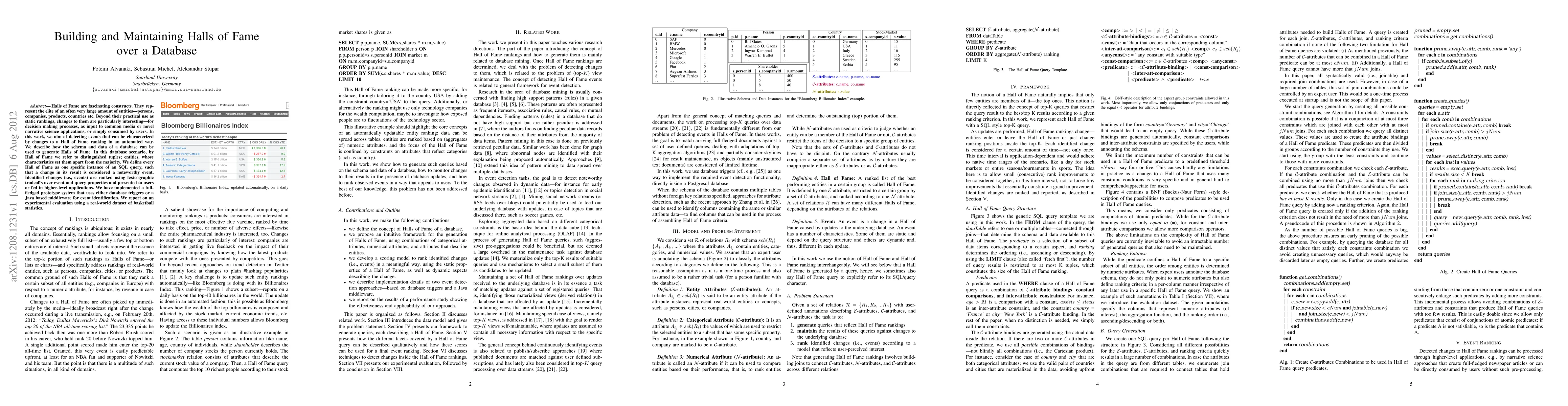 A new system detects changes to Hall of Fame rankings using database triggers or Java middleware, identifying noteworthy events for users or applications, and ranks them based on lexicographic tradeoffs.