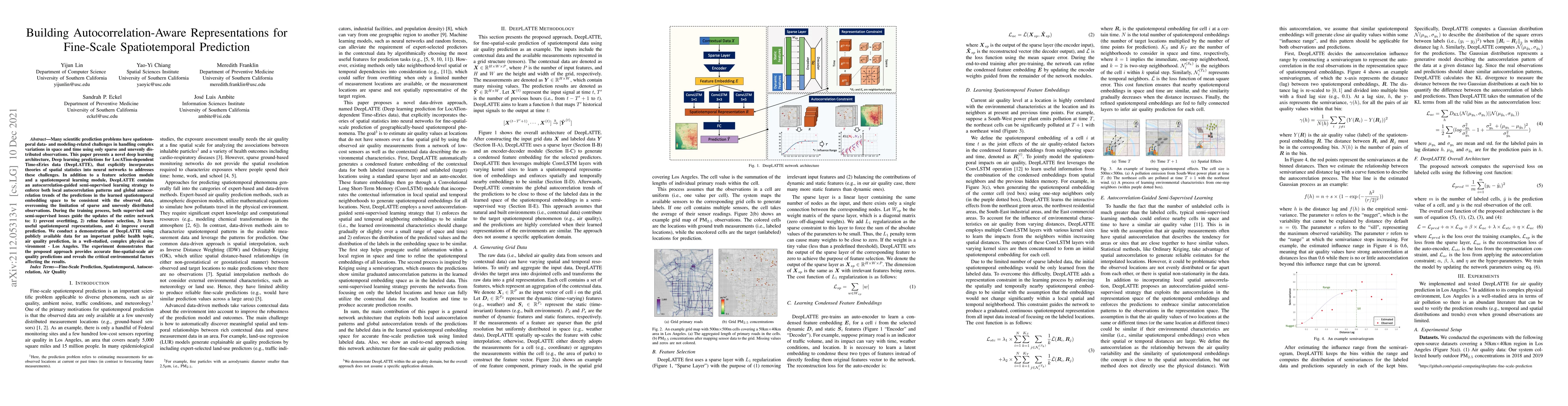 This paper introduces DeepLATTE, a deep learning architecture that integrates spatial statistics into neural networks to predict spatiotemporal data, addressing challenges from sparse and uneven observations. The model uses an autocorrelation-guided semi-supervised learning strategy to improve prediction accuracy and reveals significant environmental factors in air quality predictions in Los Angeles.