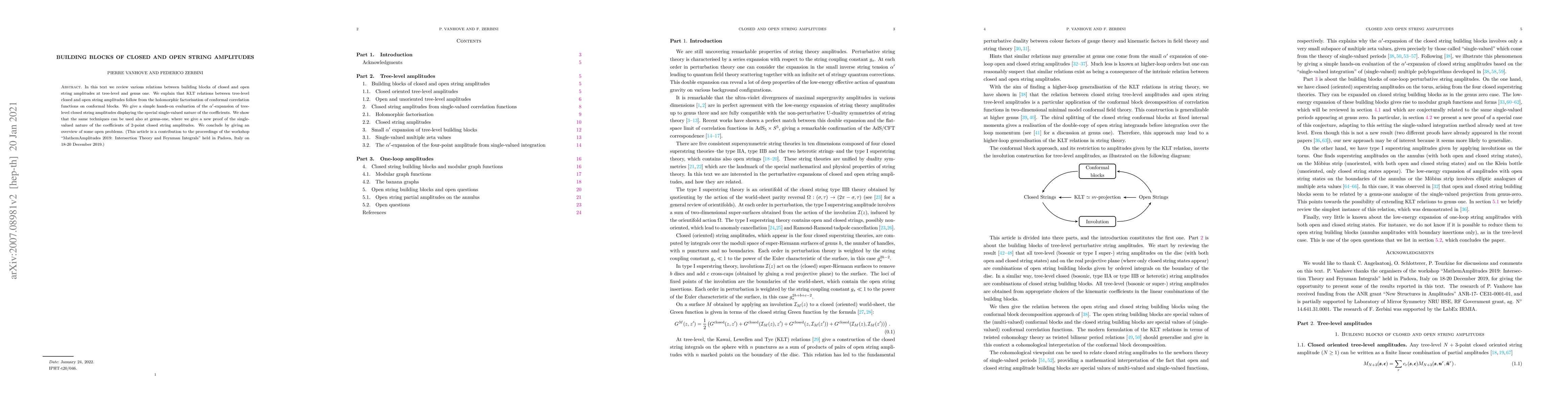 In this text we review various relations between building blocks of closed and open string amplitudes at tree-level and genus one. We explain that KLT relations between tree-level closed and open string amplitudes follow from the holomorphic factorisation of conformal correlation functions on conformal blocks. We give a simple hands-on evaluation of the $\alpha'$-expansion of tree-level closed string amplitudes displaying the special single-valued nature of the coefficients. We show that the same techniques can be used also at genus-one, where we give a new proof of the single-valued nature of the coefficients of 2-point closed string amplitudes. We conclude by giving an overview of some open problems.