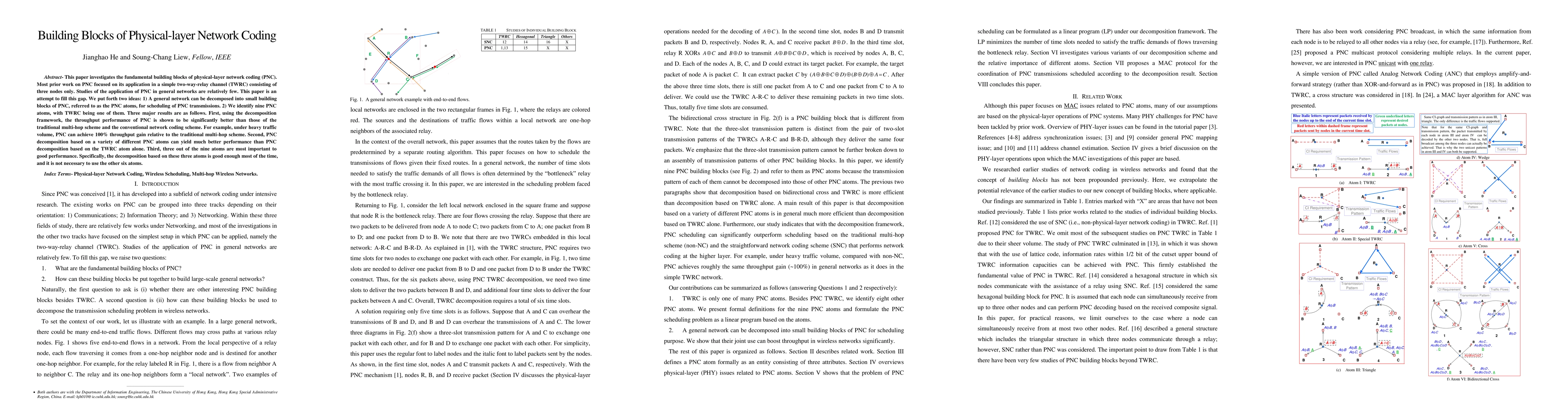 Physical-layer network coding achieves significantly better throughput performance than traditional methods in general networks through decomposition into smaller building blocks, known as PNC atoms.