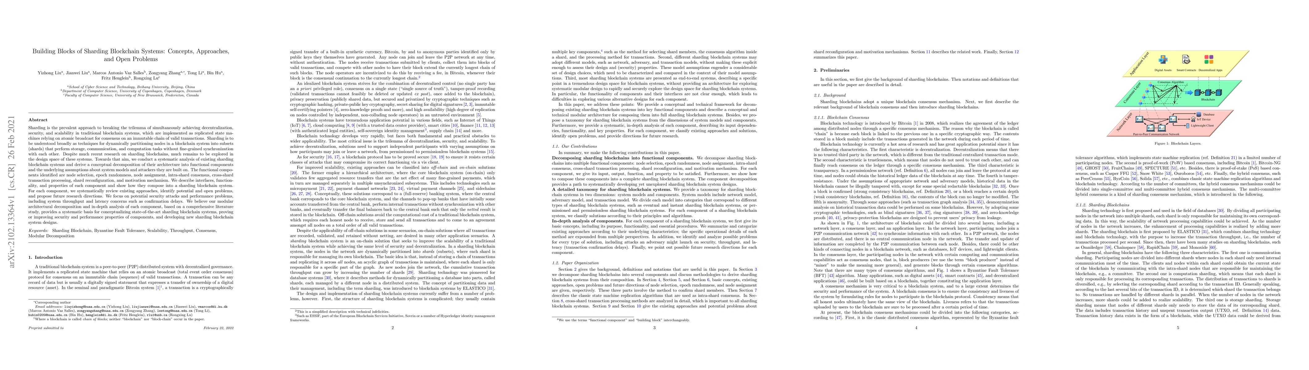 This paper systematically analyzes sharding blockchain systems, decomposing them into functional components like node selection, intra-shard consensus, and cross-shard transaction processing. It identifies open problems, potential security threats, and performance issues, proposing future research directions to enhance security and efficiency.