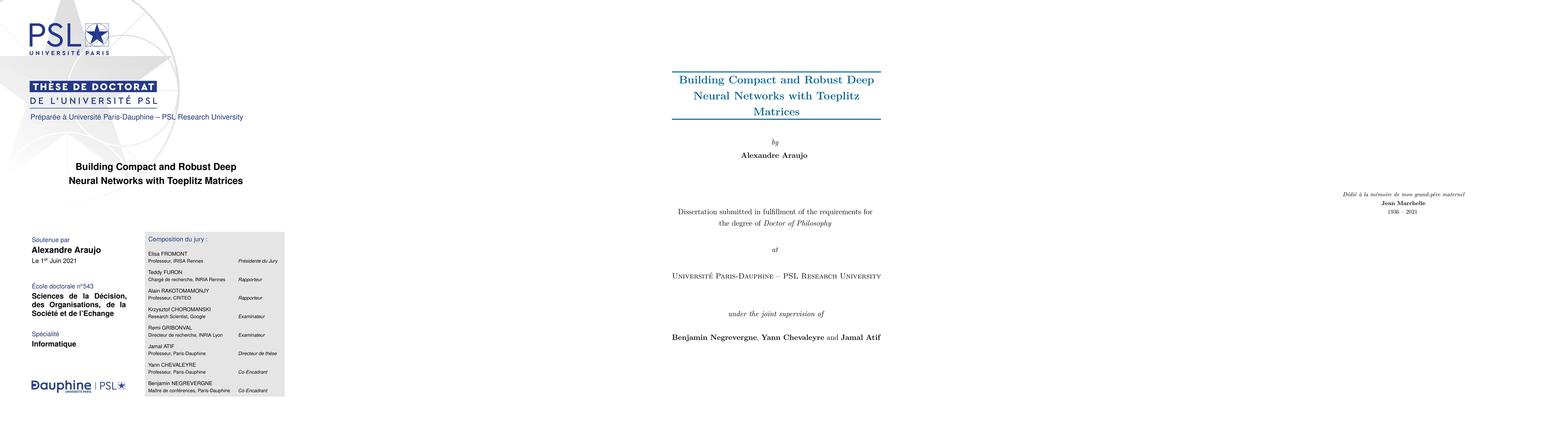Deep neural networks are state-of-the-art in a wide variety of tasks, however, they exhibit important limitations which hinder their use and deployment in real-world applications. When developing and training neural networks, the accuracy should not be the only concern, neural networks must also be cost-effective and reliable. Although accurate, large neural networks often lack these properties. This thesis focuses on the problem of training neural networks which are not only accurate but also compact, easy to train, reliable and robust to adversarial examples. To tackle these problems, we leverage the properties of structured matrices from the Toeplitz family to build compact and secure neural networks.