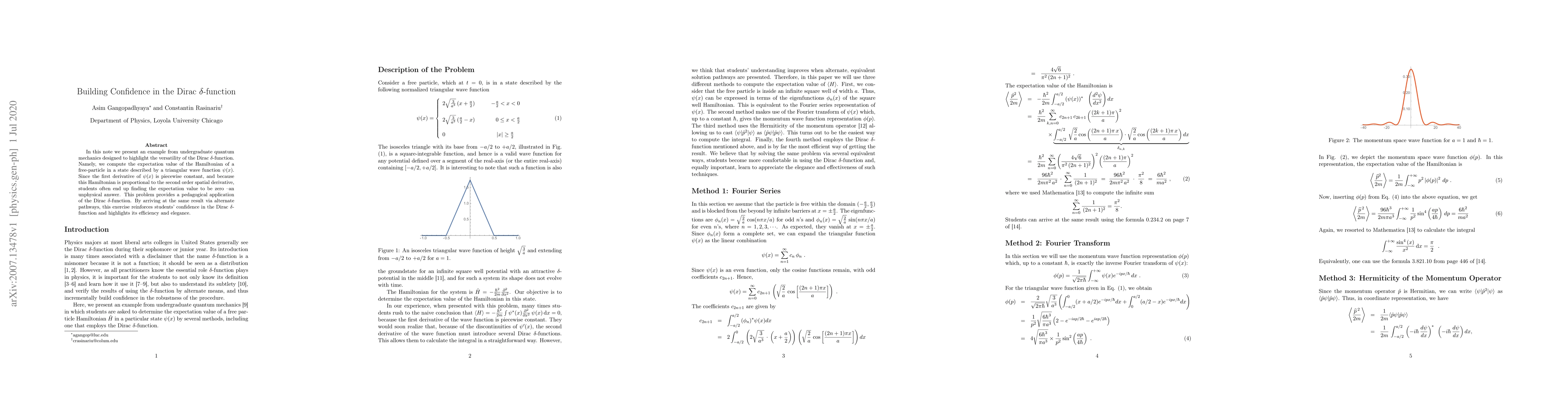 This paper demonstrates a quantum mechanics problem using a triangular wave function to illustrate the utility of the Dirac $\delta$-function, addressing common misconceptions about the expectation value of a free-particle's Hamiltonian. It reinforces students' confidence in the $\delta$-function through alternative calculation methods.