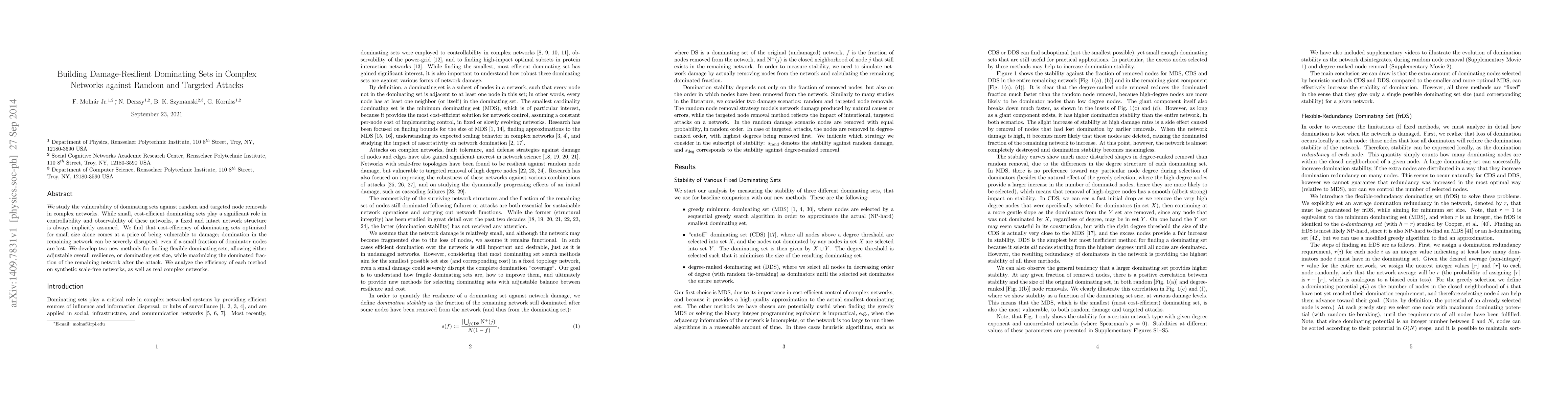 We study the vulnerability of dominating sets against random and targeted node removals in complex networks. While small, cost-efficient dominating sets play a significant role in controllability and observability of these networks, a fixed and intact network structure is always implicitly assumed. We find that cost-efficiency of dominating sets optimized for small size alone comes at a price of being vulnerable to damage; domination in the remaining network can be severely disrupted, even if a small fraction of dominator nodes are lost. We develop two new methods for finding flexible dominating sets, allowing either adjustable overall resilience, or dominating set size, while maximizing the dominated fraction of the remaining network after the attack. We analyze the efficiency of each method on synthetic scale-free networks, as well as real complex networks.
